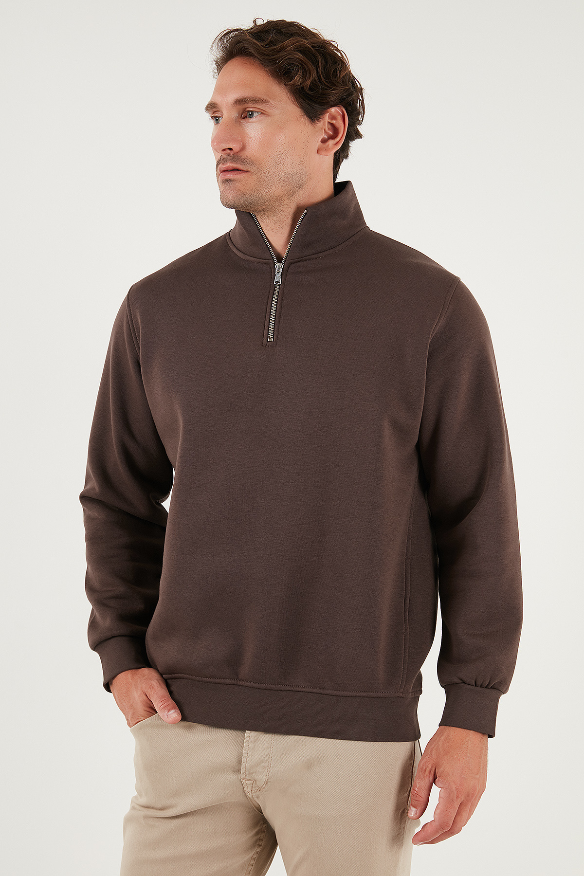 سویشرت مردانه یقه ایستاده نیم زیپ نخی سایز معمولی SWEAT 59052592