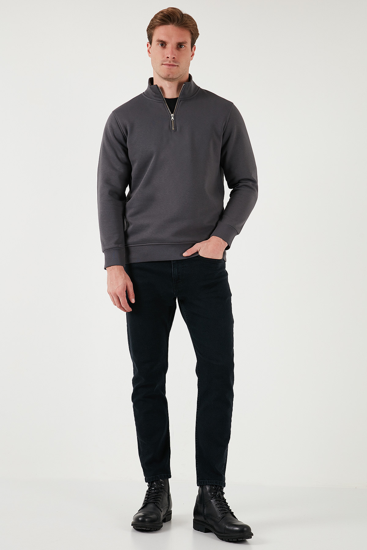 سویشرت مردانه یقه ایستاده نیم زیپ نخی سایز معمولی SWEAT 59052592