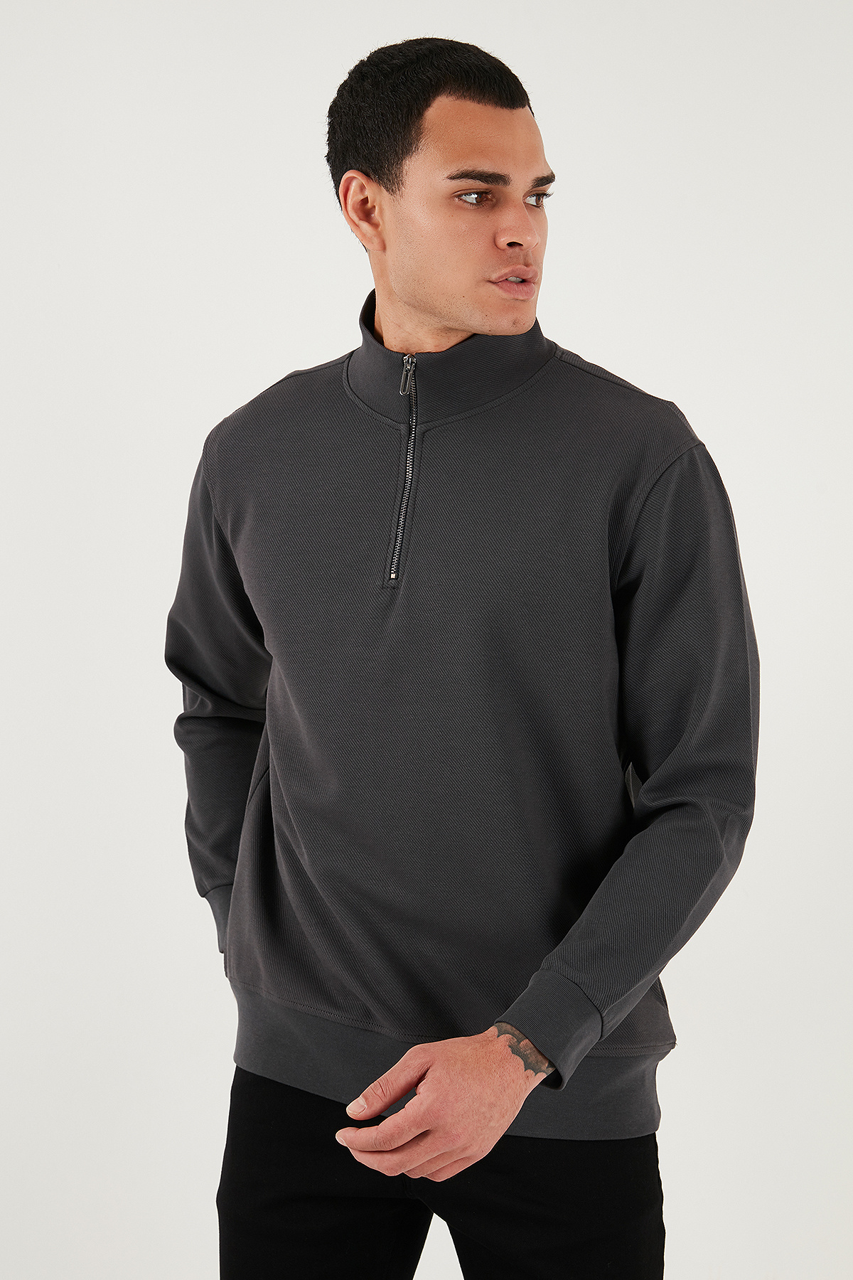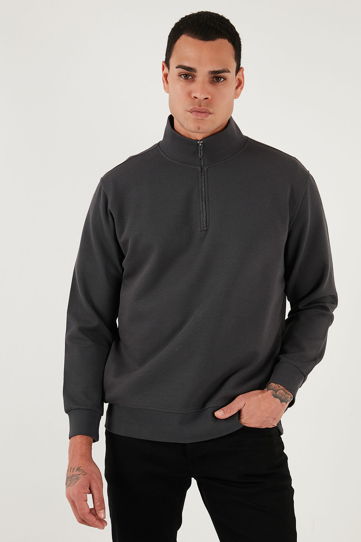 سویشرت مردانه یقه ایستاده نیم زیپ نخی سایز معمولی SWEAT 5905470