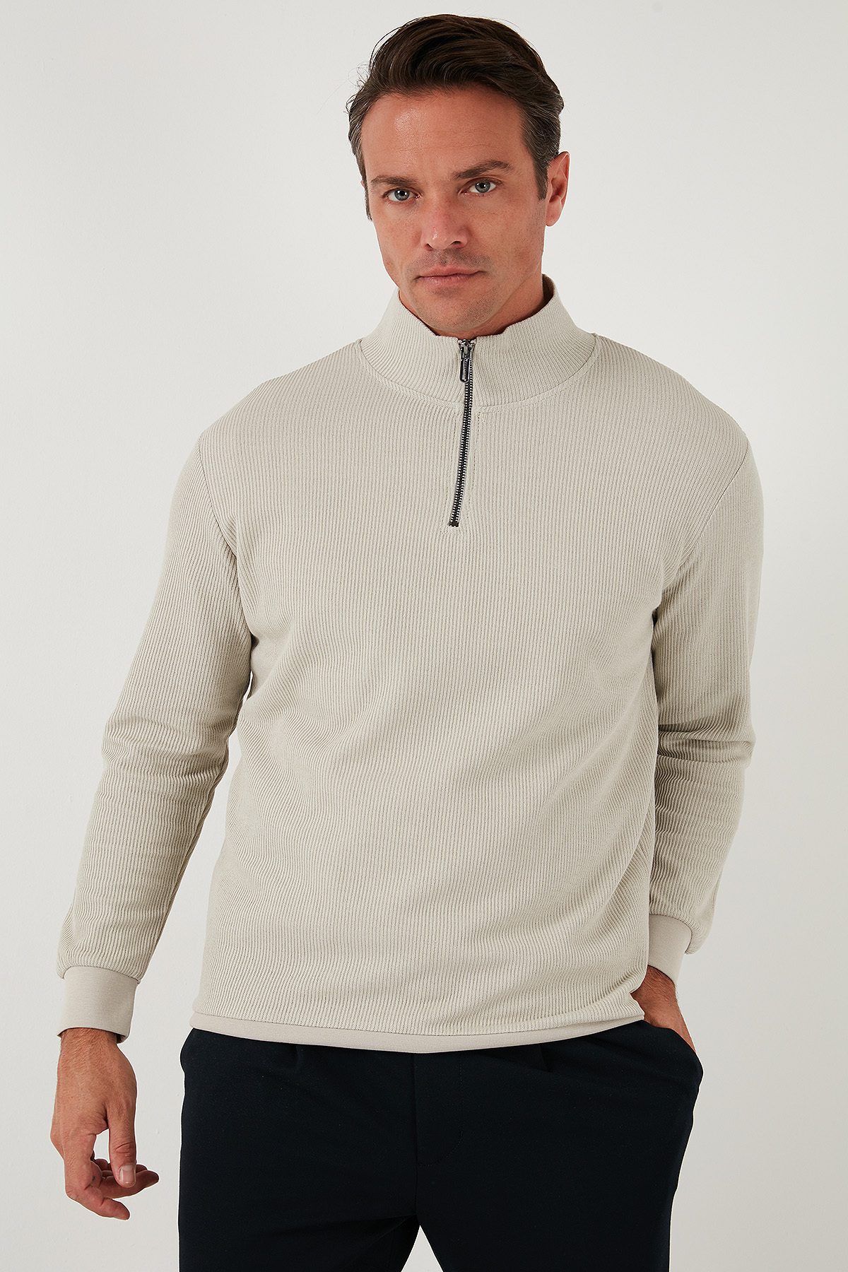 بسته ۲ عددی سویشرت مردانه نخی معمولی نیم زیپ یقه ایستاده SWEAT 5905716S2