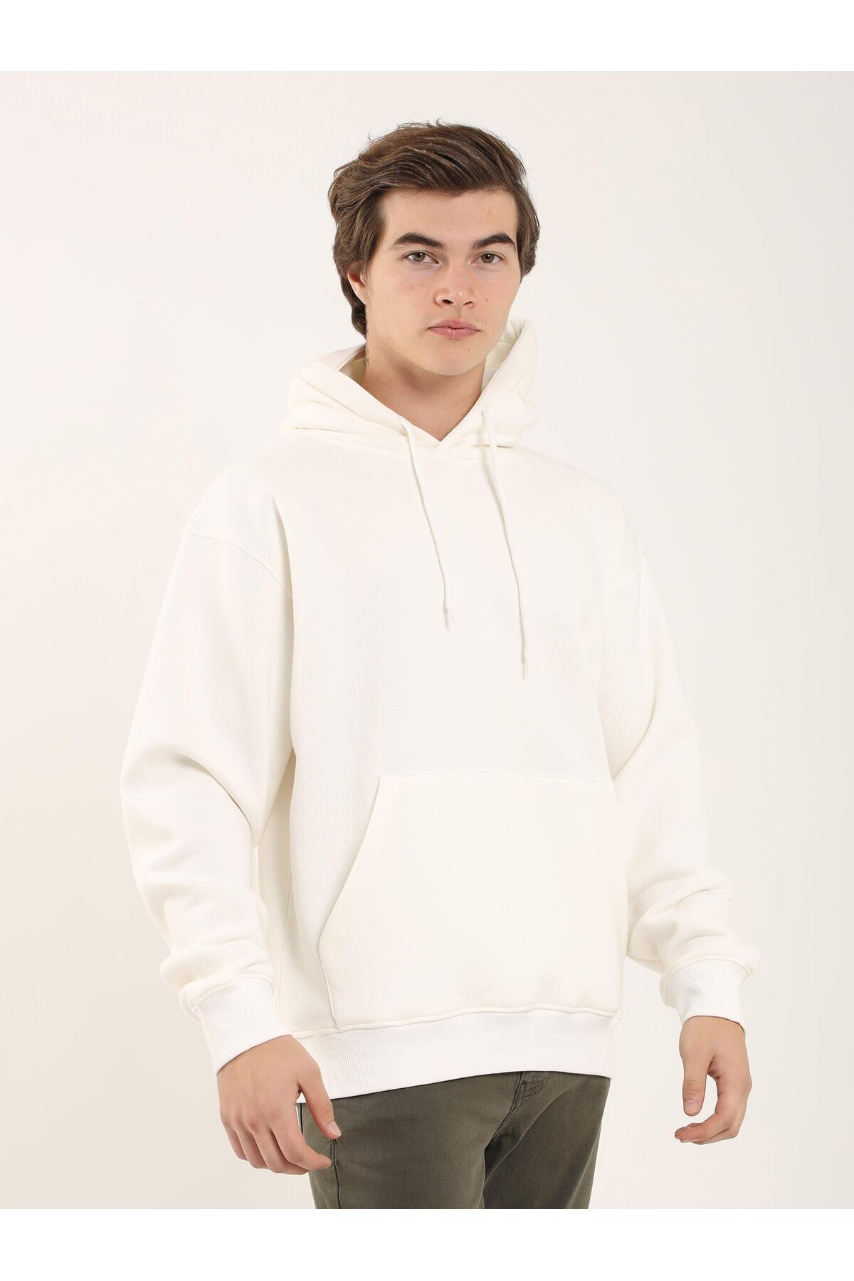 سویشرت کلاهدار نخی ساده مردانه Ecru