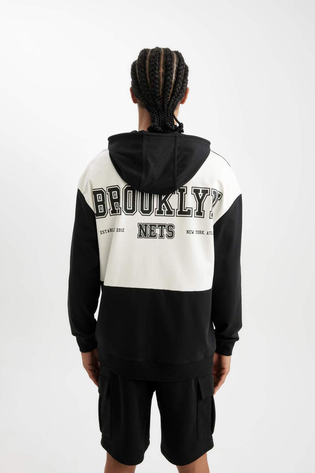 سویشرت کلاهدار مشکی DeFactoFit مخصوص بازی بروکلین نتس در لیگ NBA با طرح پشت C9252AX24AU