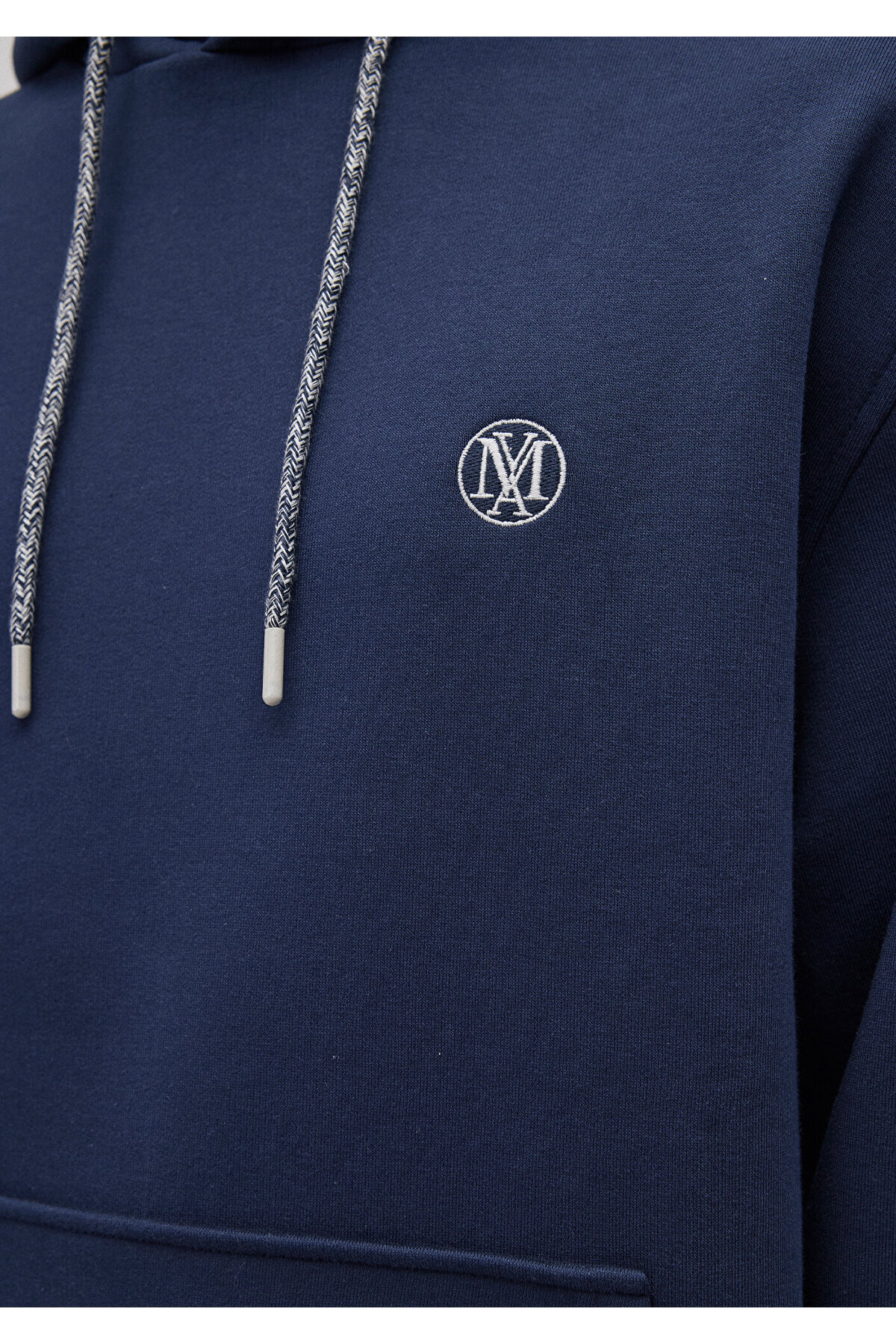 سویشرت کلاه‌دار سرمه‌ای گلدوزی‌شده با لوگو 065809-70497