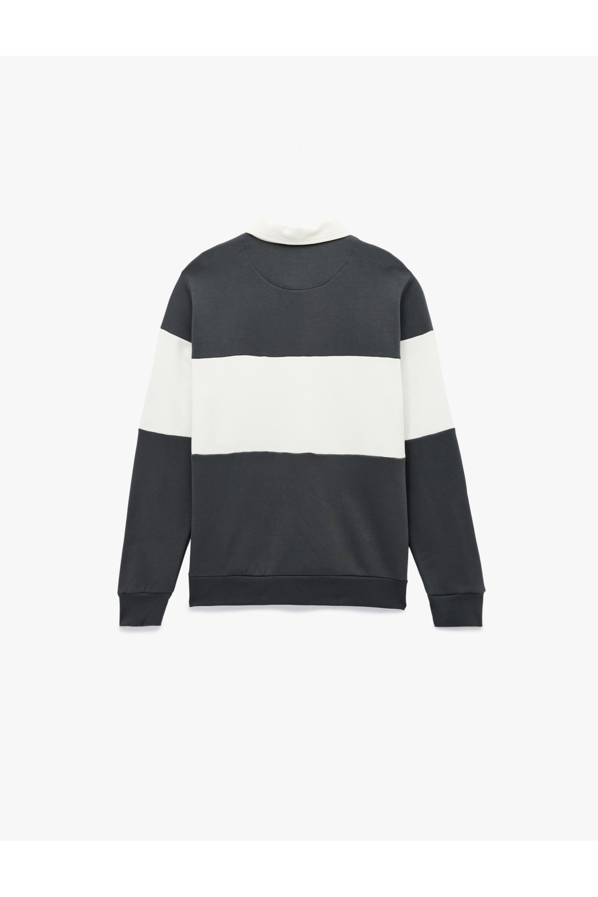 سویشرت یقهدار گلدوزی شده با بلوک رنگی بلند آستین بلند