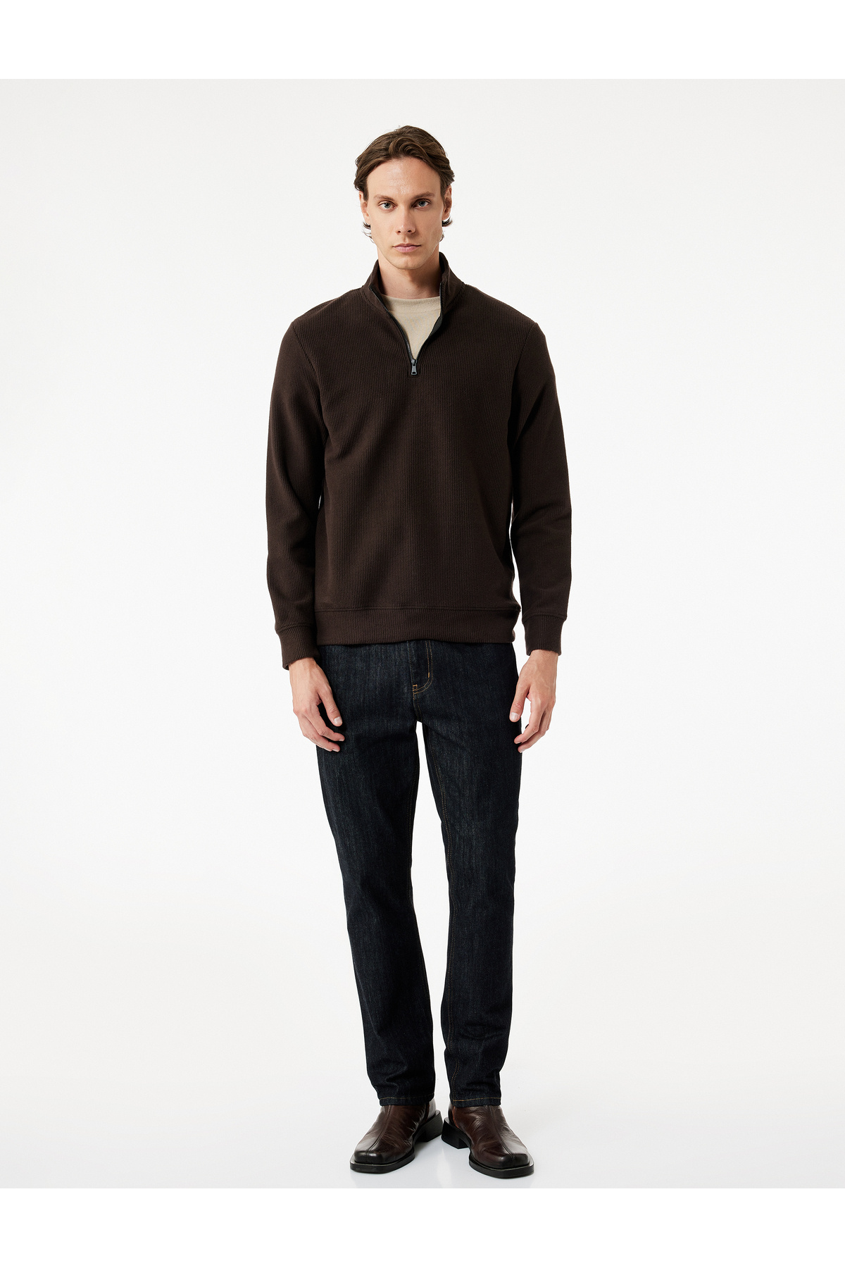 سویشرت مردانه قهوه ای کوتون | 6WAM70096MK اورجینال