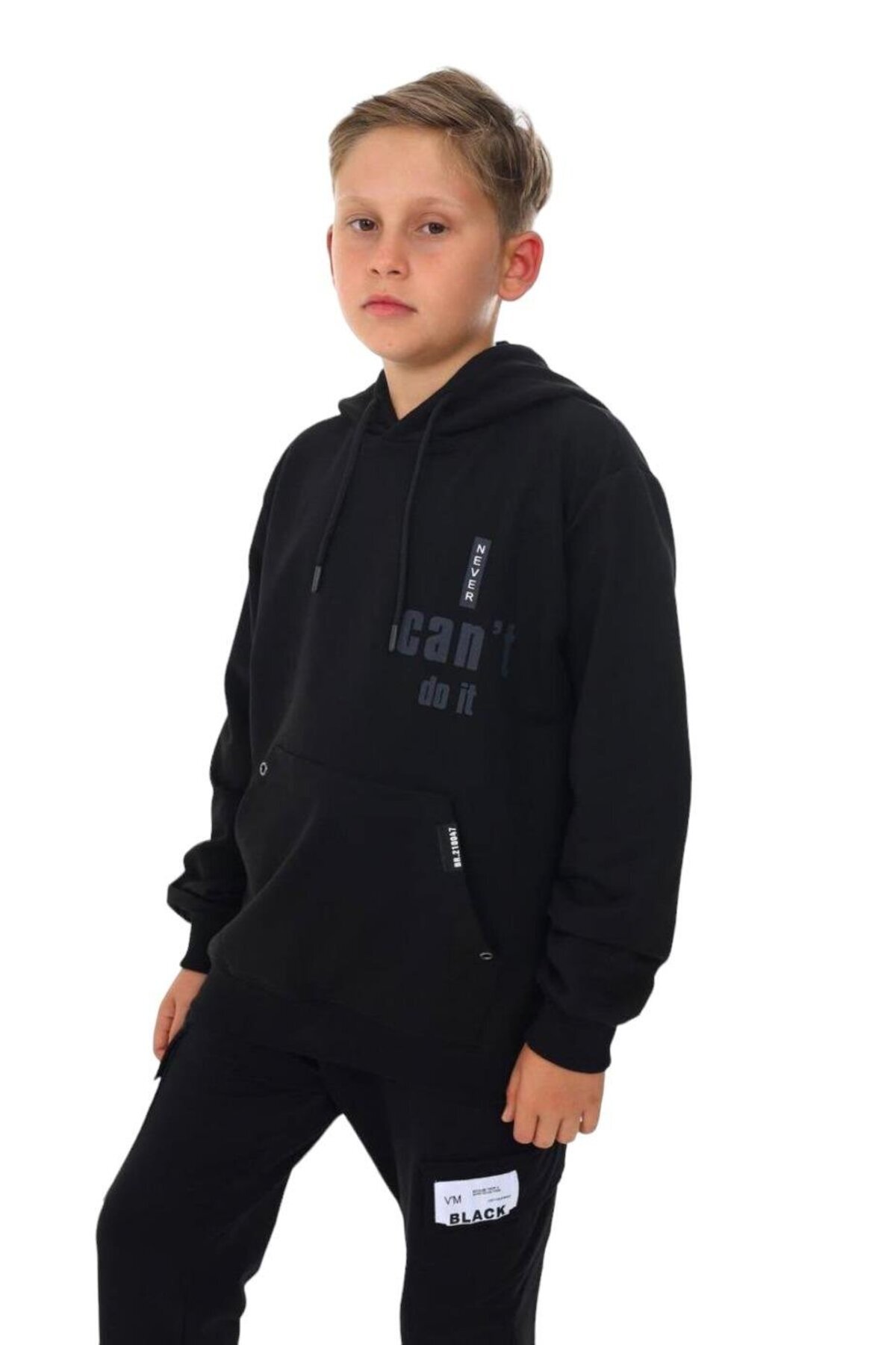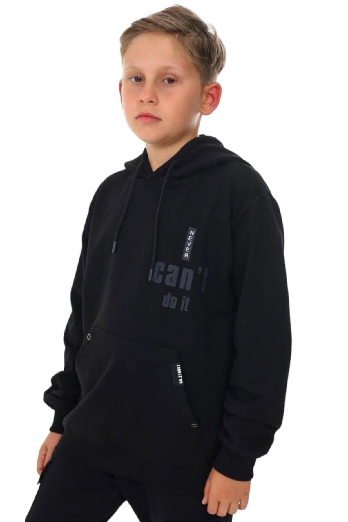 سویشرت جیبدار کانگورویی پسرانه کلاهدار با نوشتهی «نمیتوانم انجامش دهم»