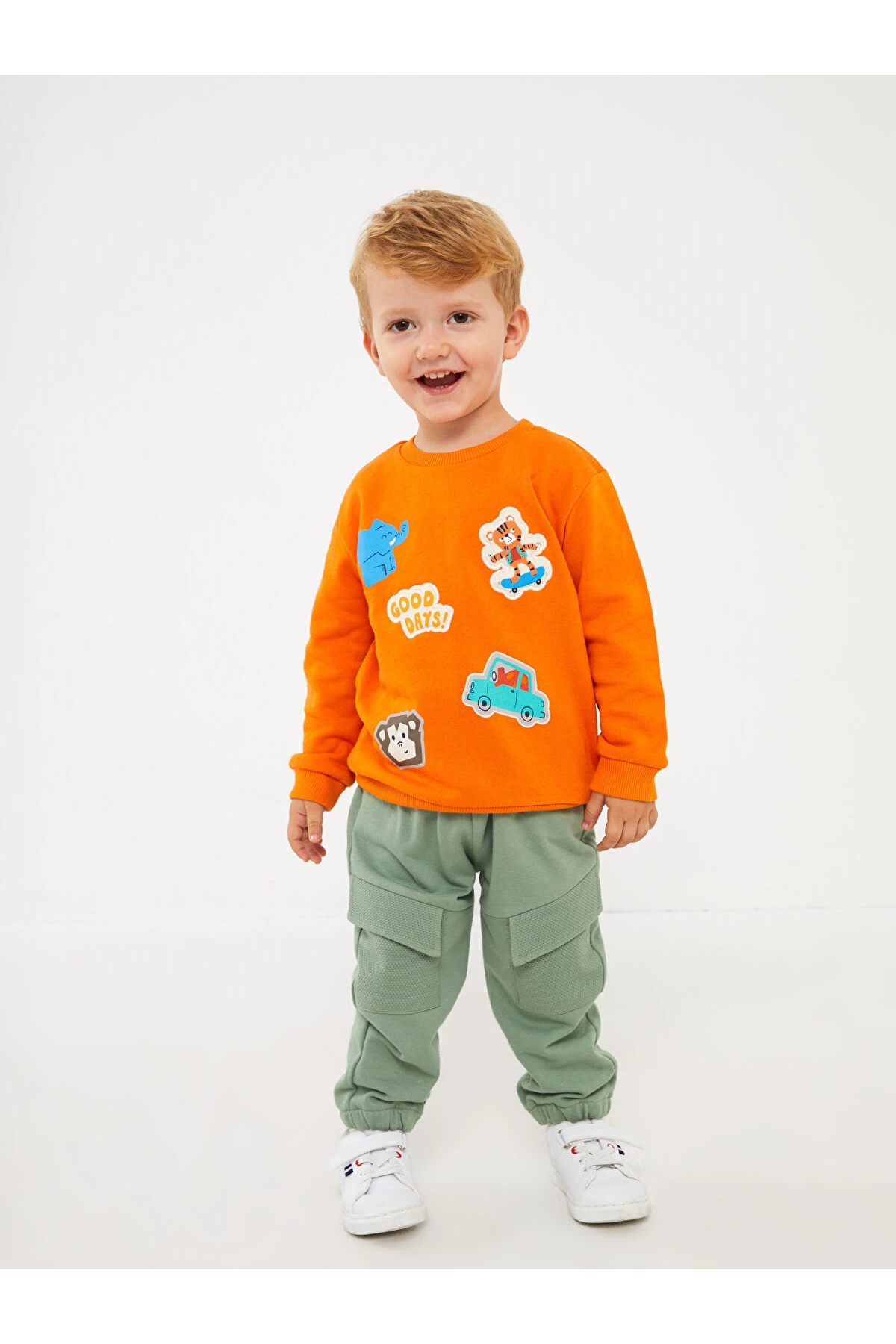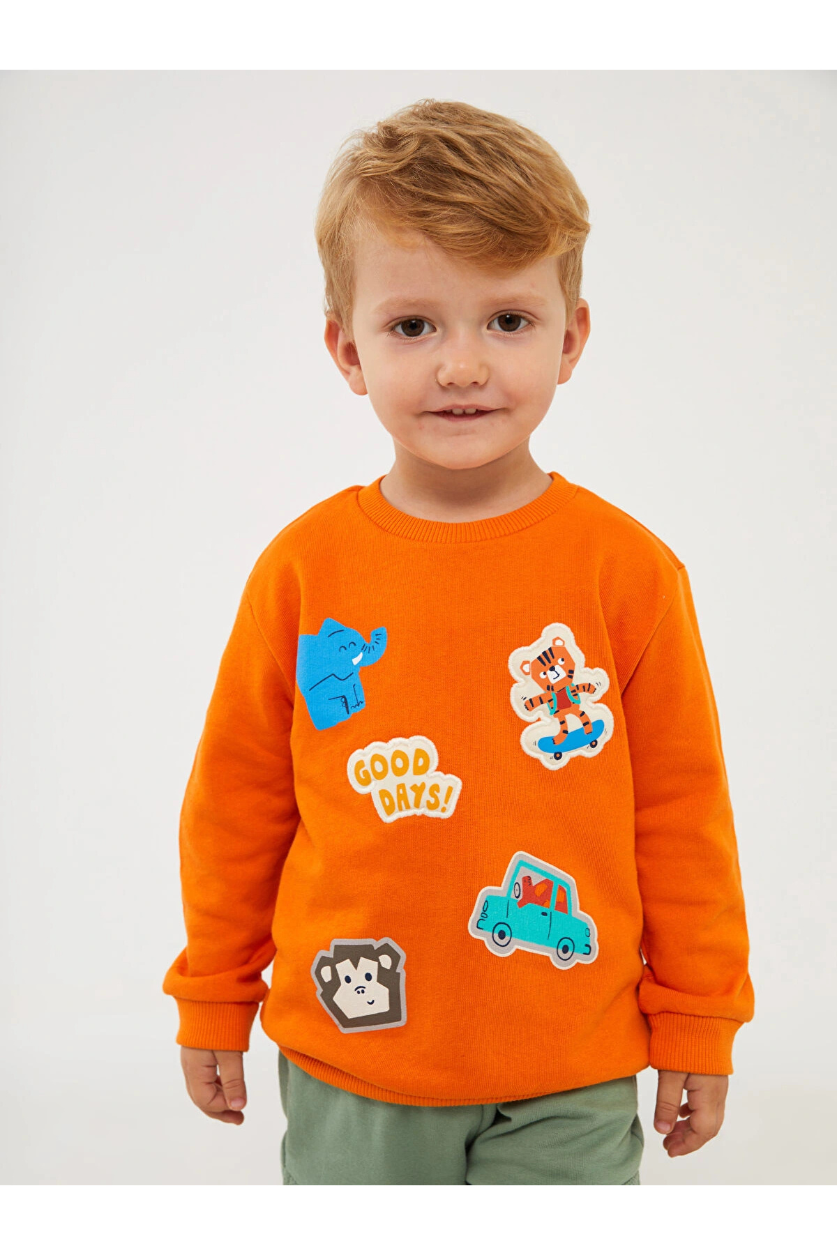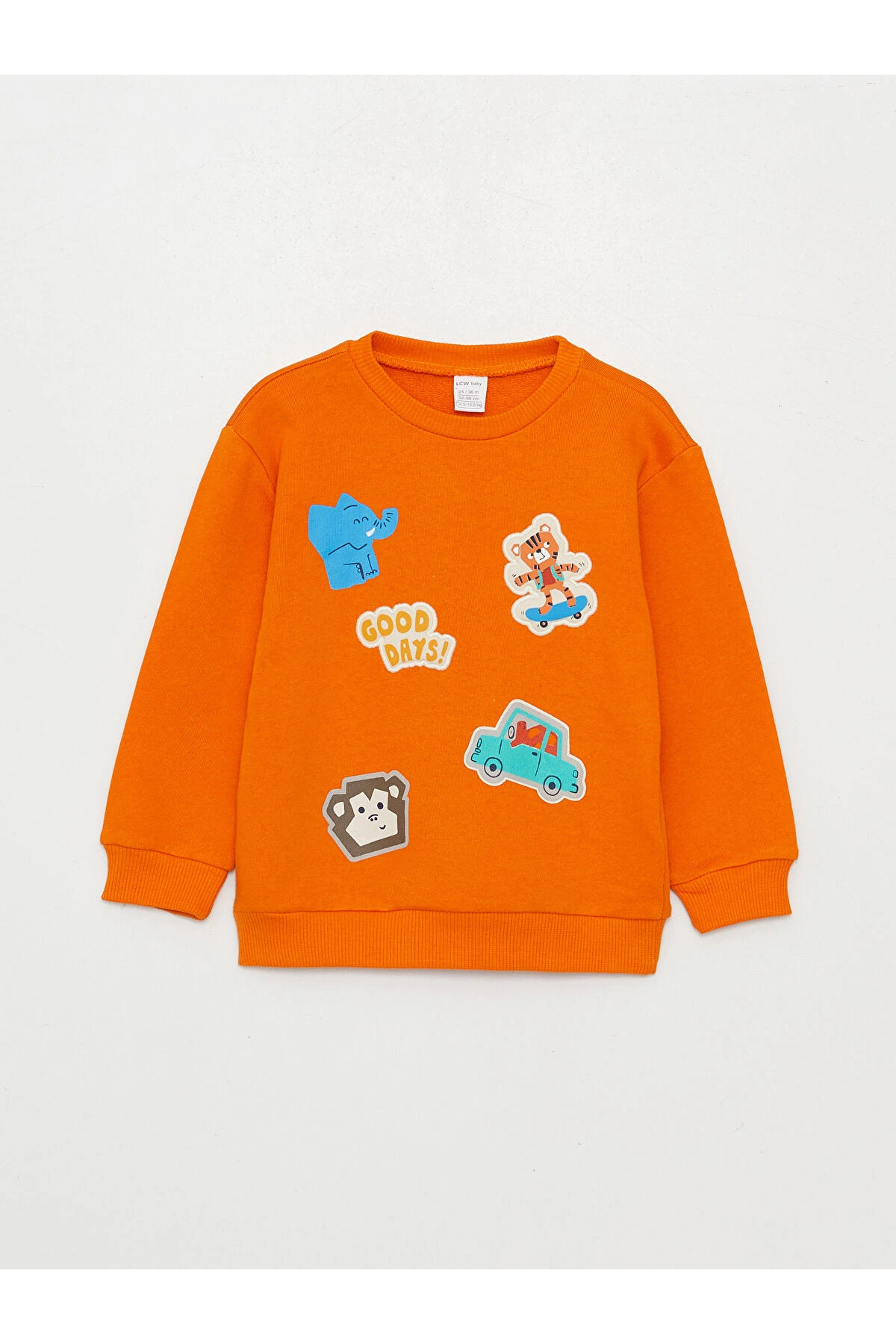 سویشرت پسرانه طرحدار یقه گرد نارنجی LCW baby