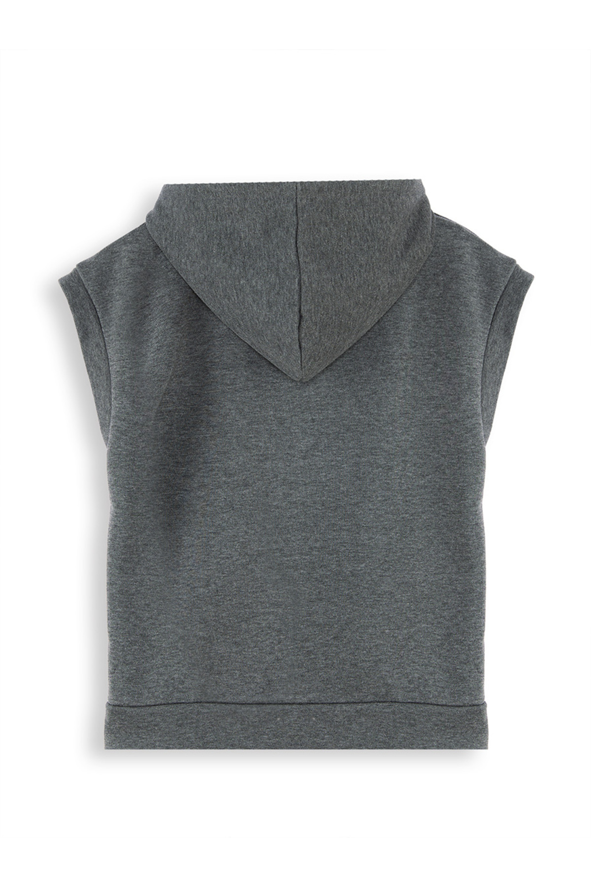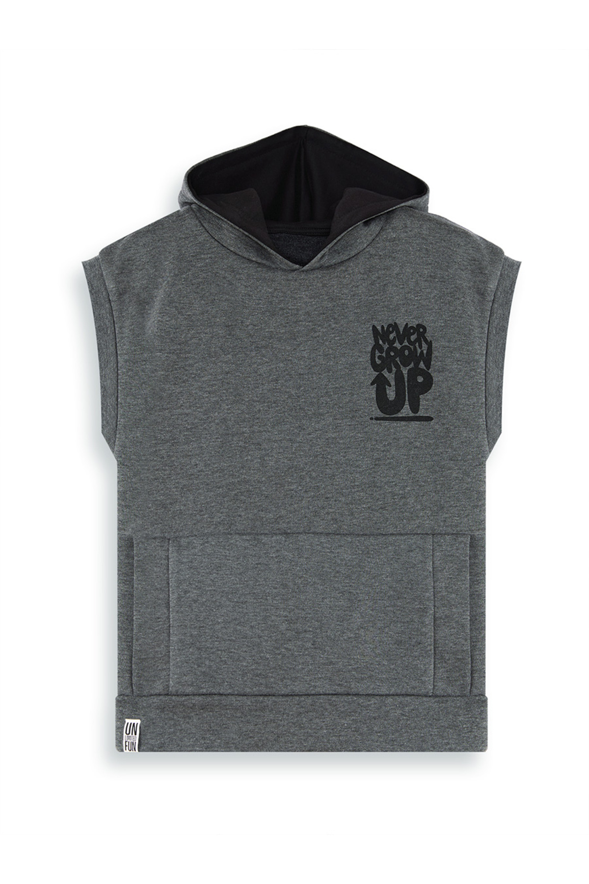 سویشرت خاکستری بدون آستین کلاهدار پسرانه