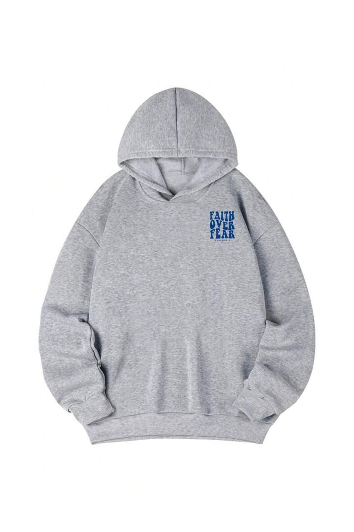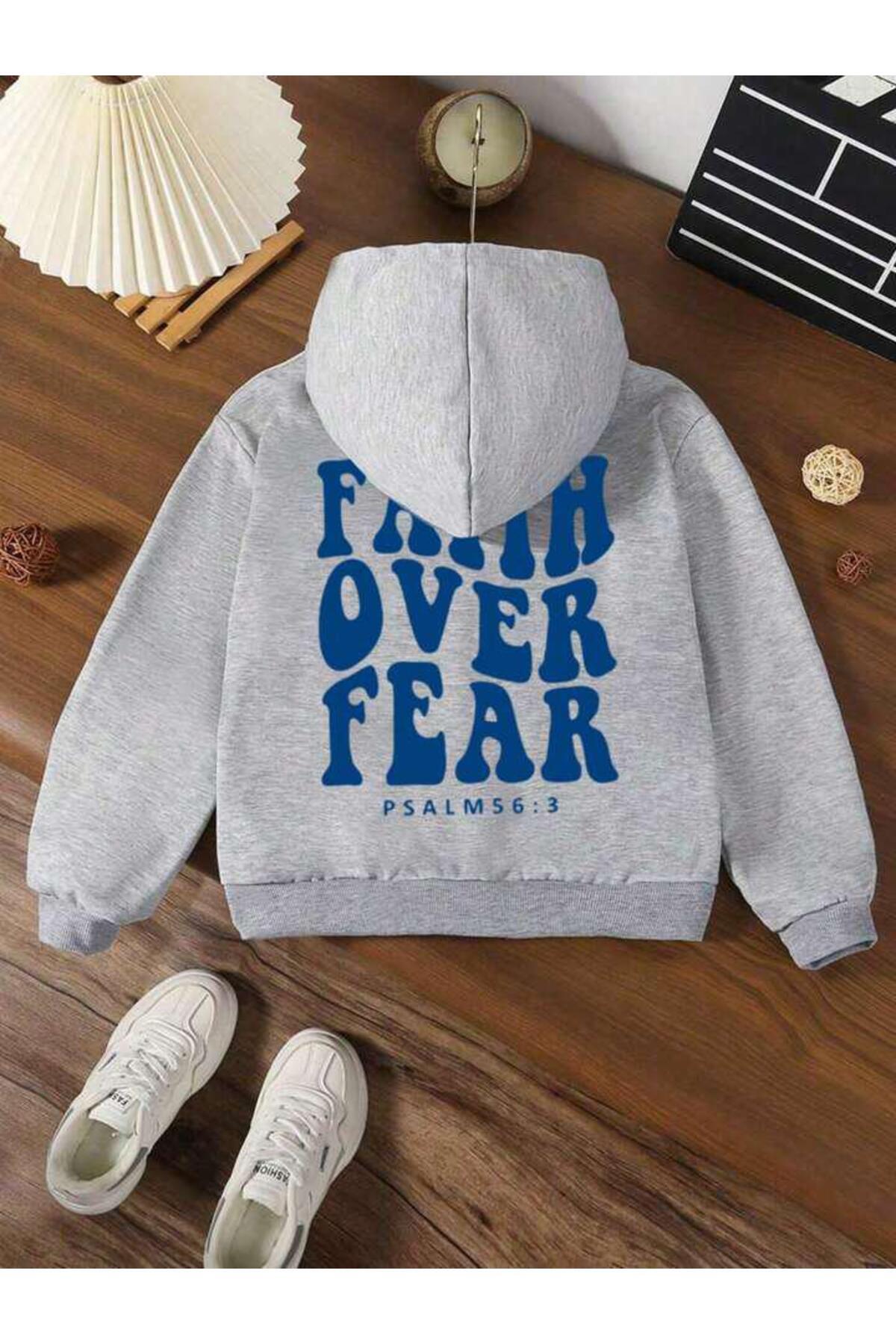 سویشرت کلاهدار طرح Faith طرح چاپ پشت و جلو خاکستری دخترانه