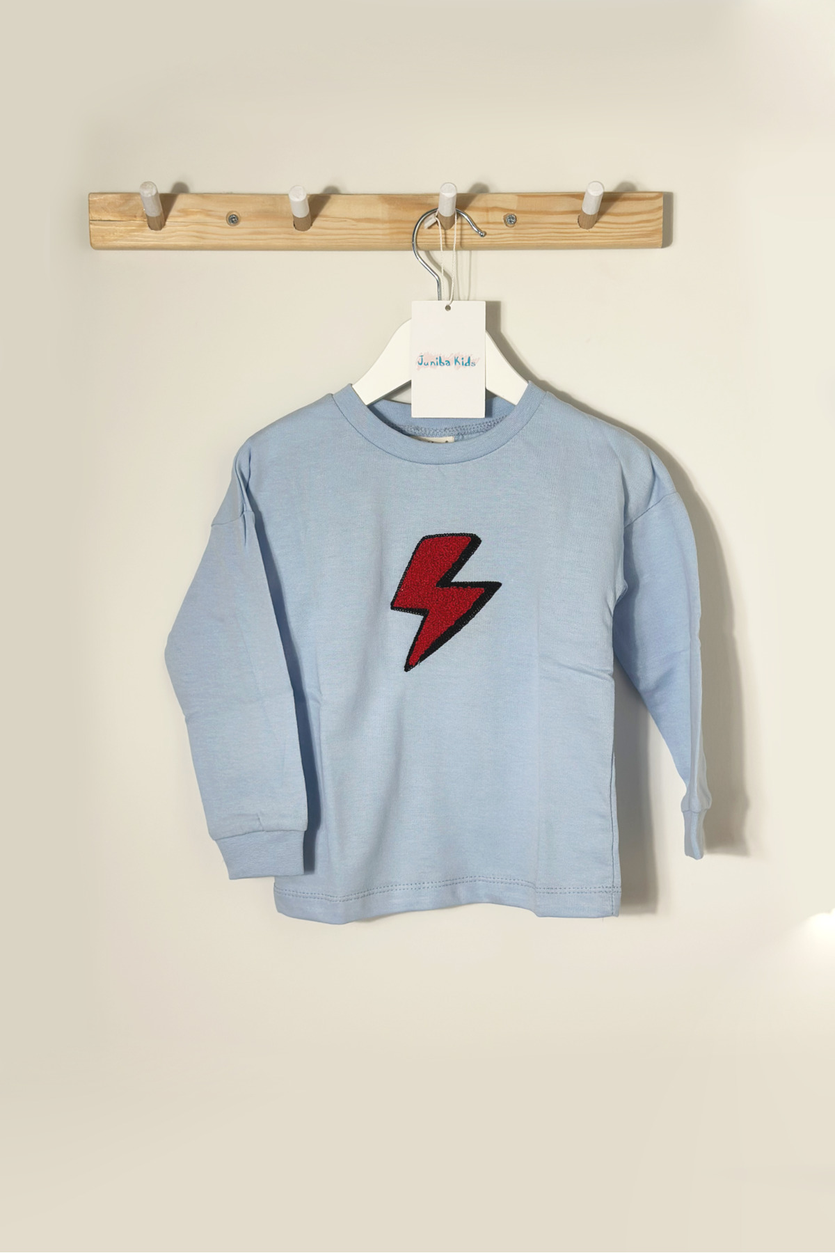 سویشرت گلدوزی شده پسرانه طرح رعد و برق آبی ویکتور