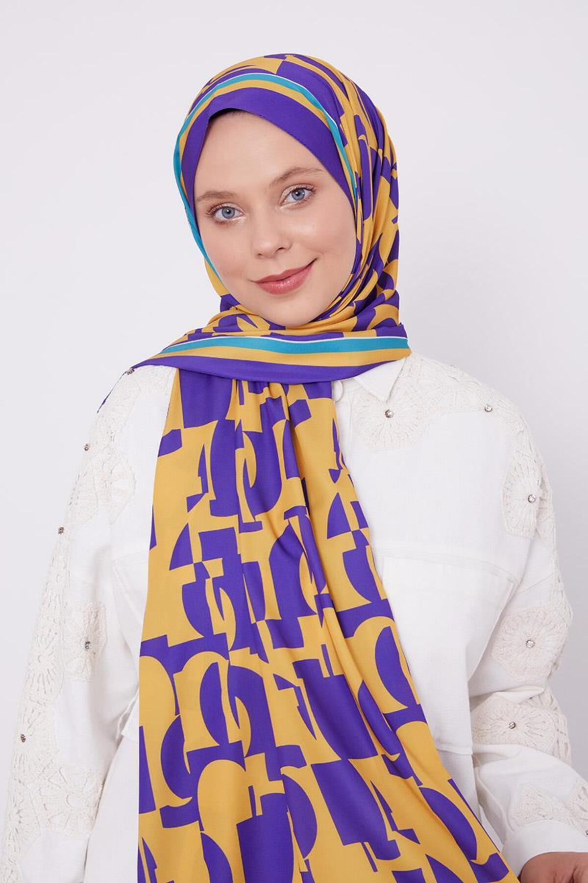 شال باشگاهی طرح انتزاعی بنفش بادمجانی