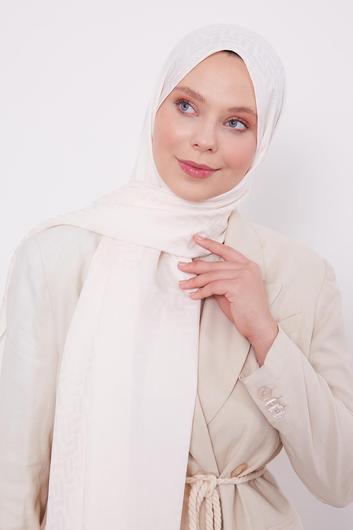 شال ژاکارد آبی طرح راه راه کرم