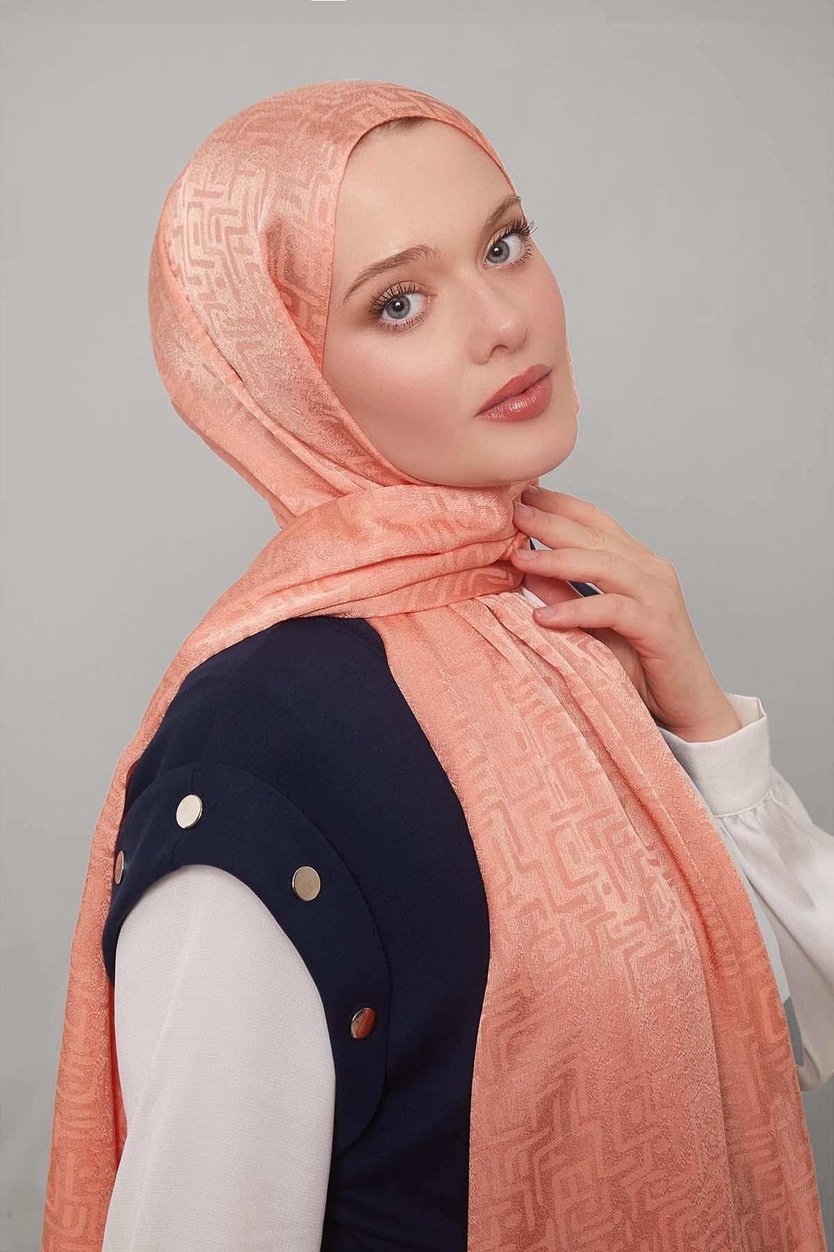 شال ژاکارد جانجان طرح سیریلیک ماهی سالمون