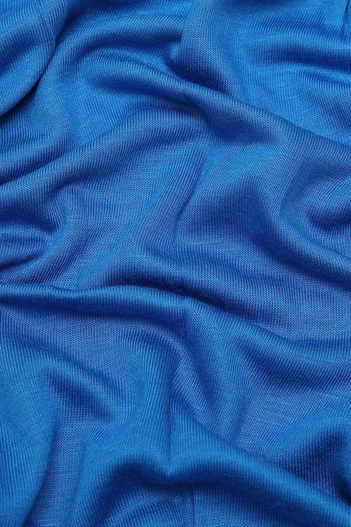 شال نخی پنج شانه آبی ساکس