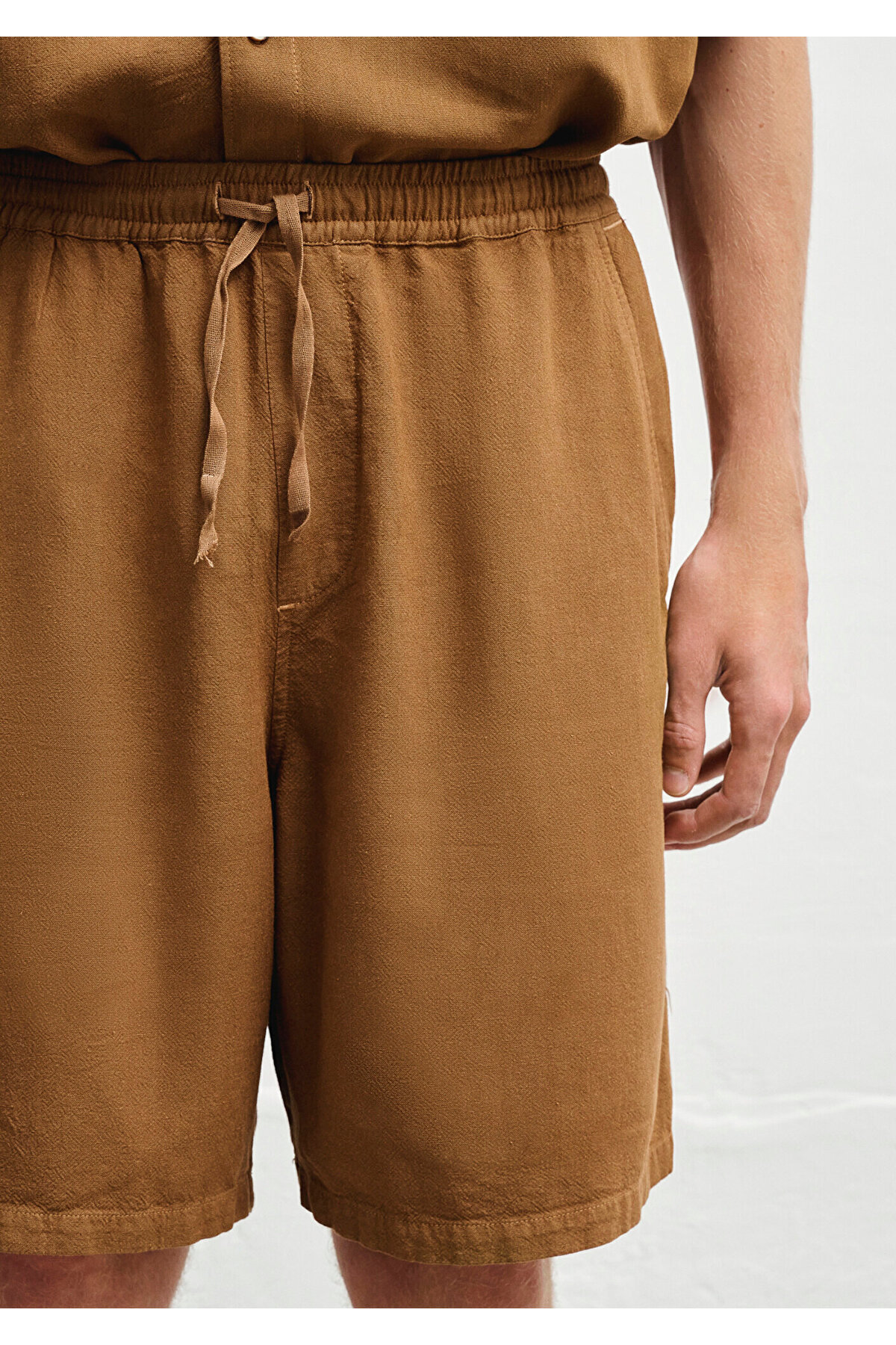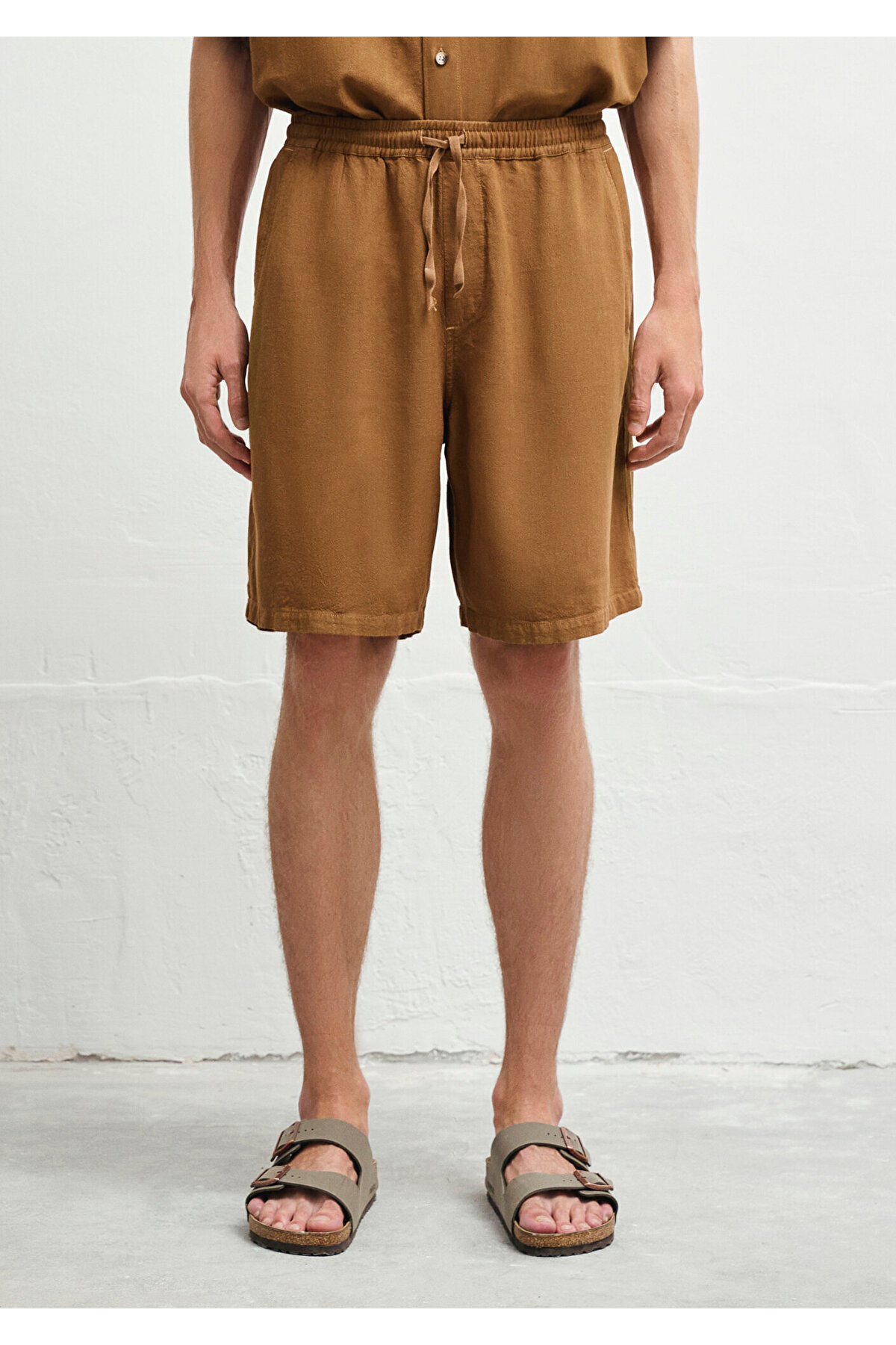شلوارک قهوهای ترکیبی کتانی 0410299-82337