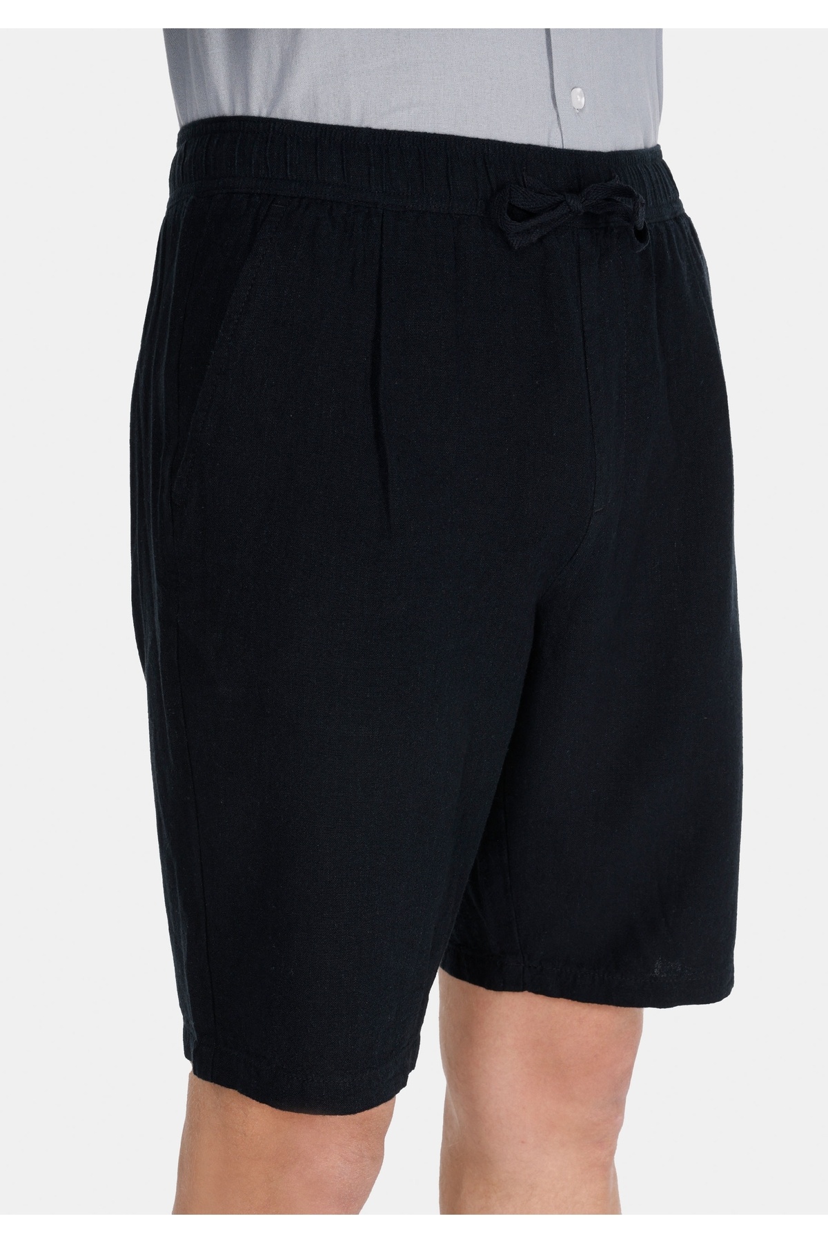 شلوارک مردانه ساده مشکی طرح کتان سایز متوسط، کمردار، مناسب برای آقایان