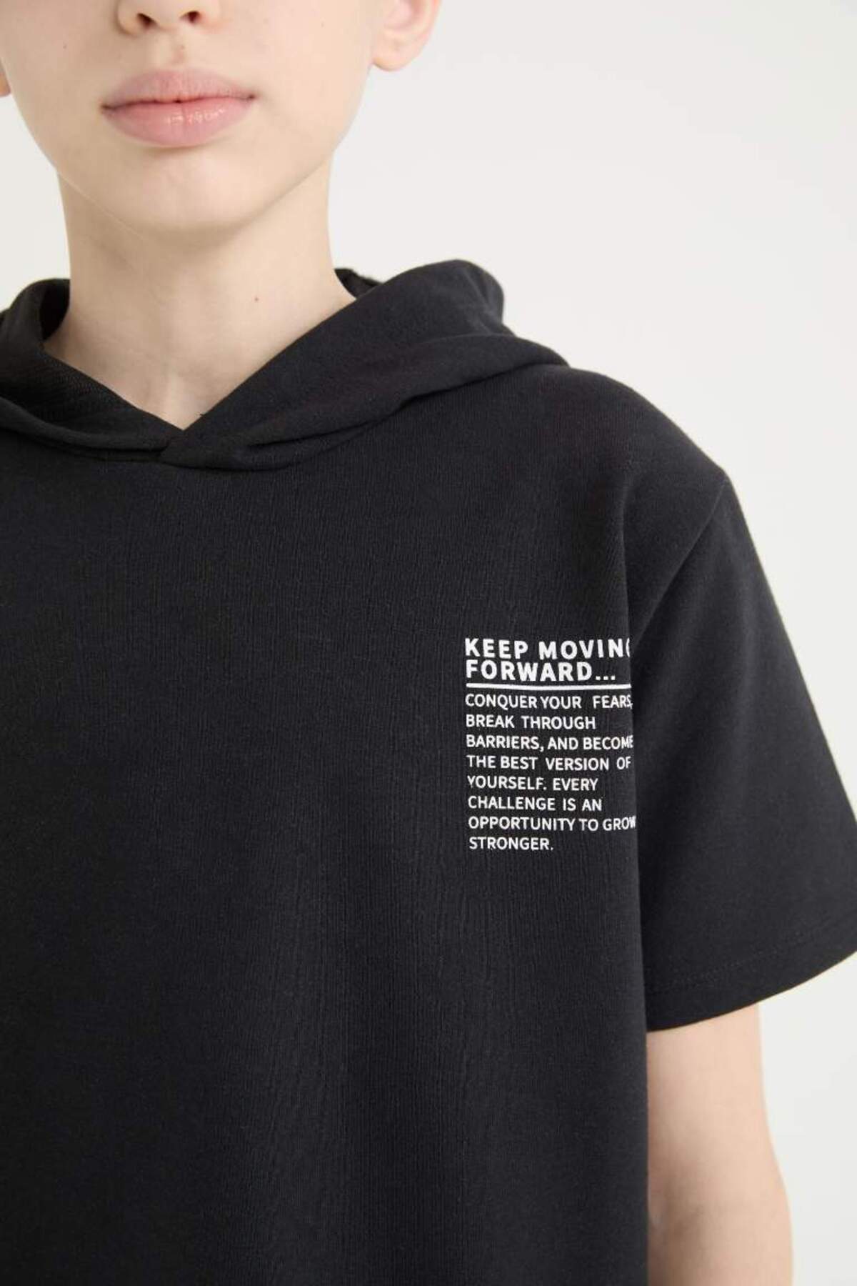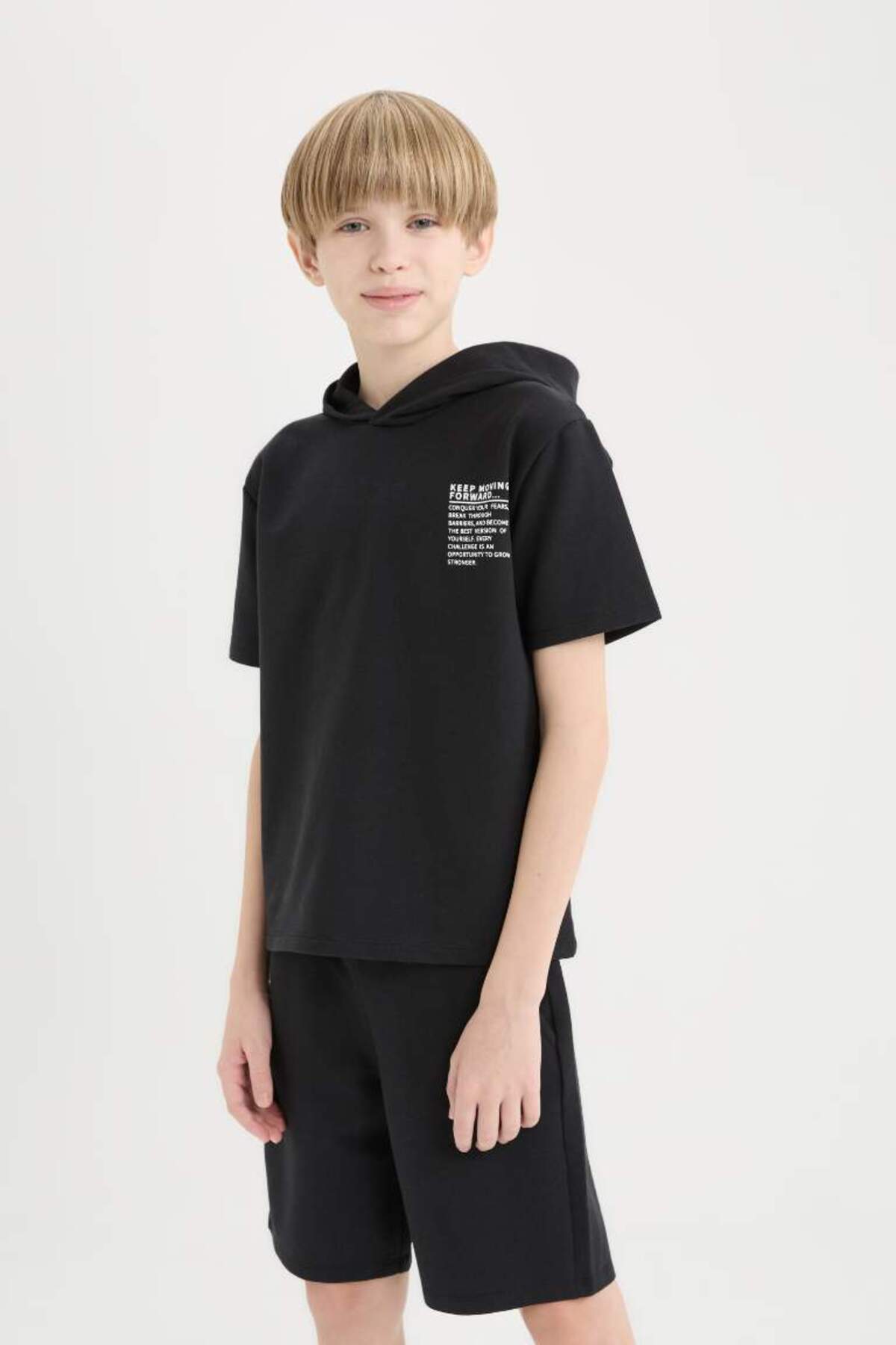 تیشرت آستین کوتاه چاپی کلاهدار پسرانه 2 تکه، شلوارک کمر کشی E2850A825SM