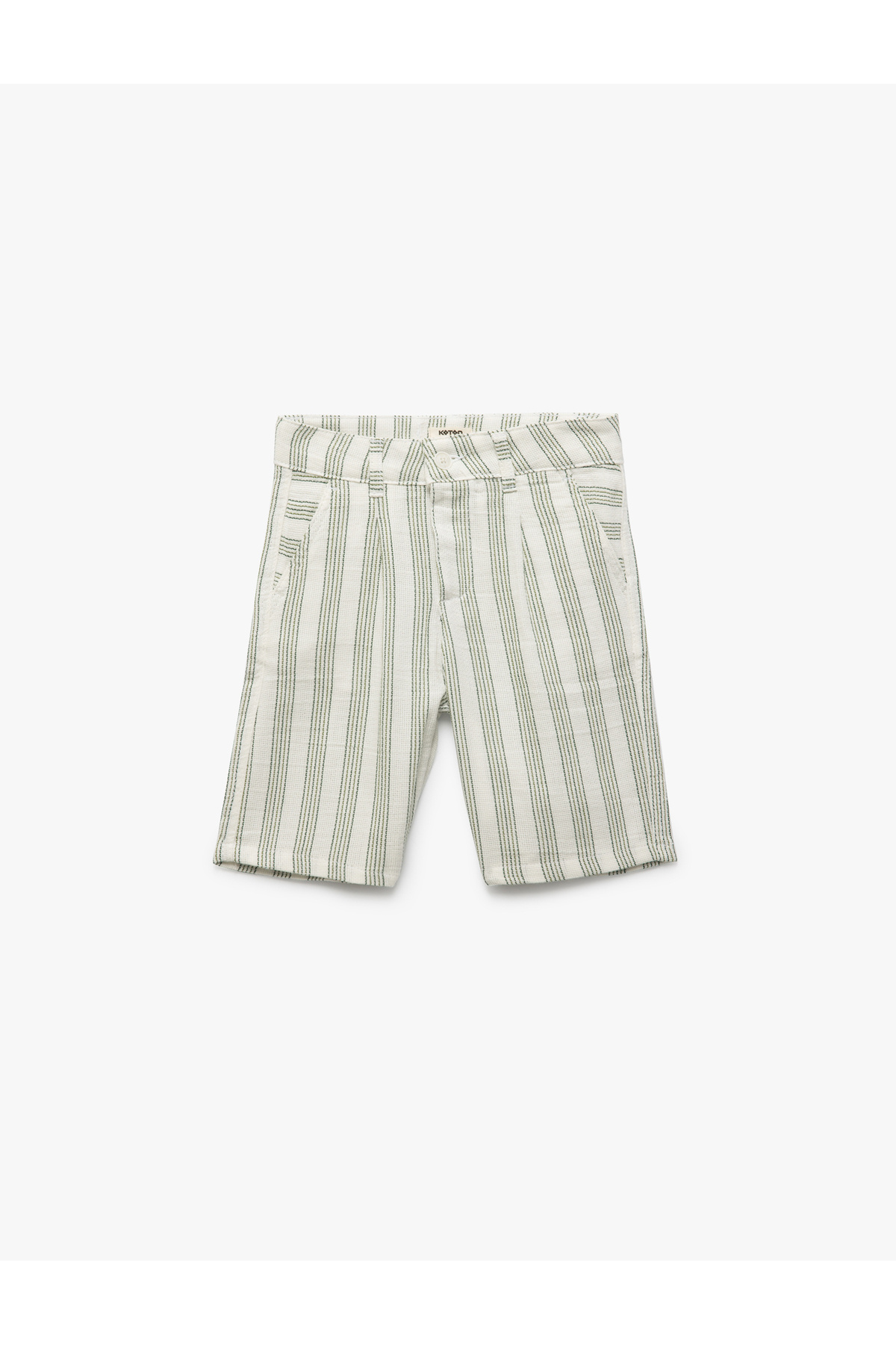 شلوارک راه راه ویسکوز ترکیبی با دکمه و جیب