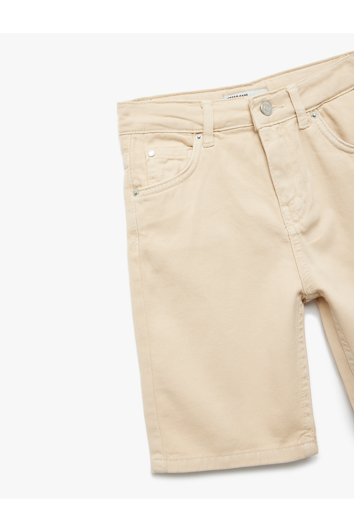 شلوارک جین نخی اسلیم فیت با کمر کشی قابل تنظیم و دکمه