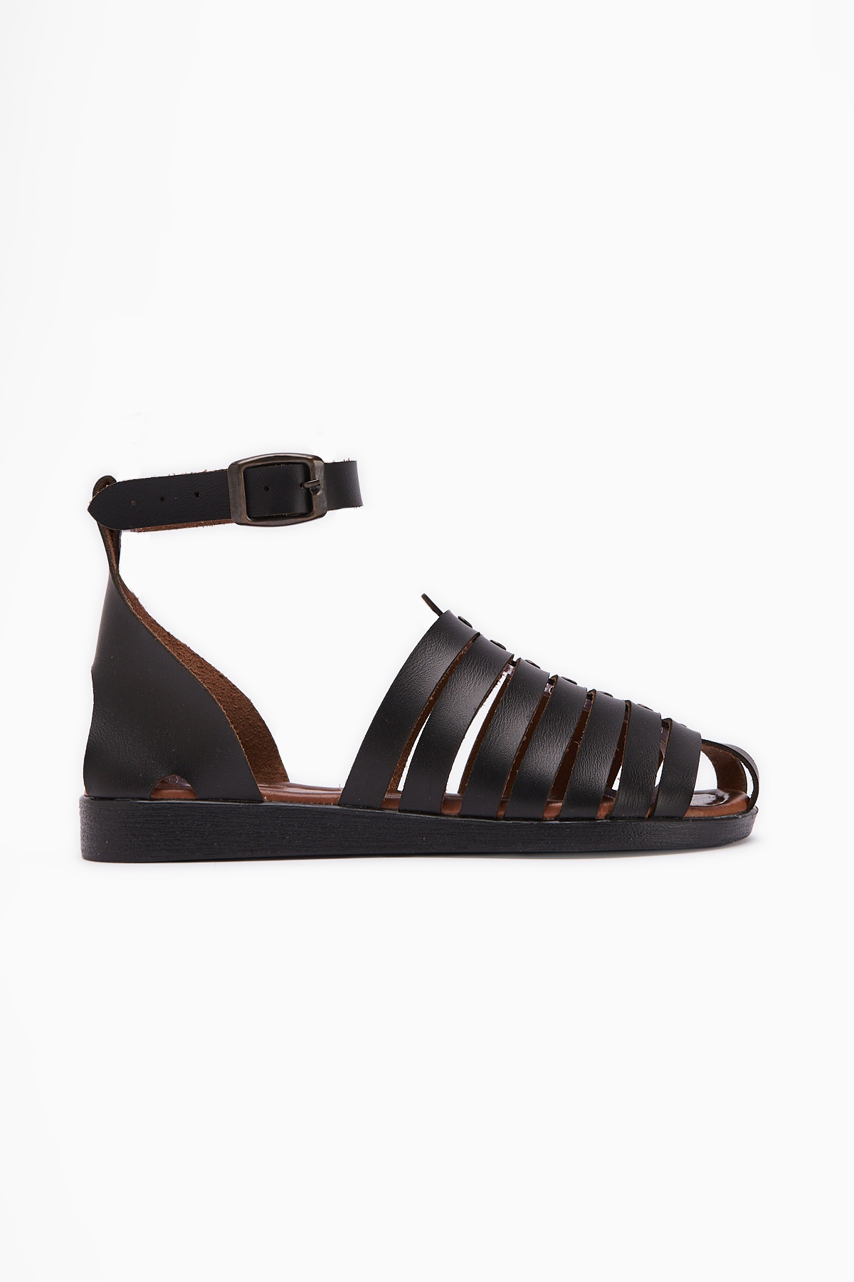 صندل زنانه بدروم، روکش پنجه مشکی چرم اصل هلن