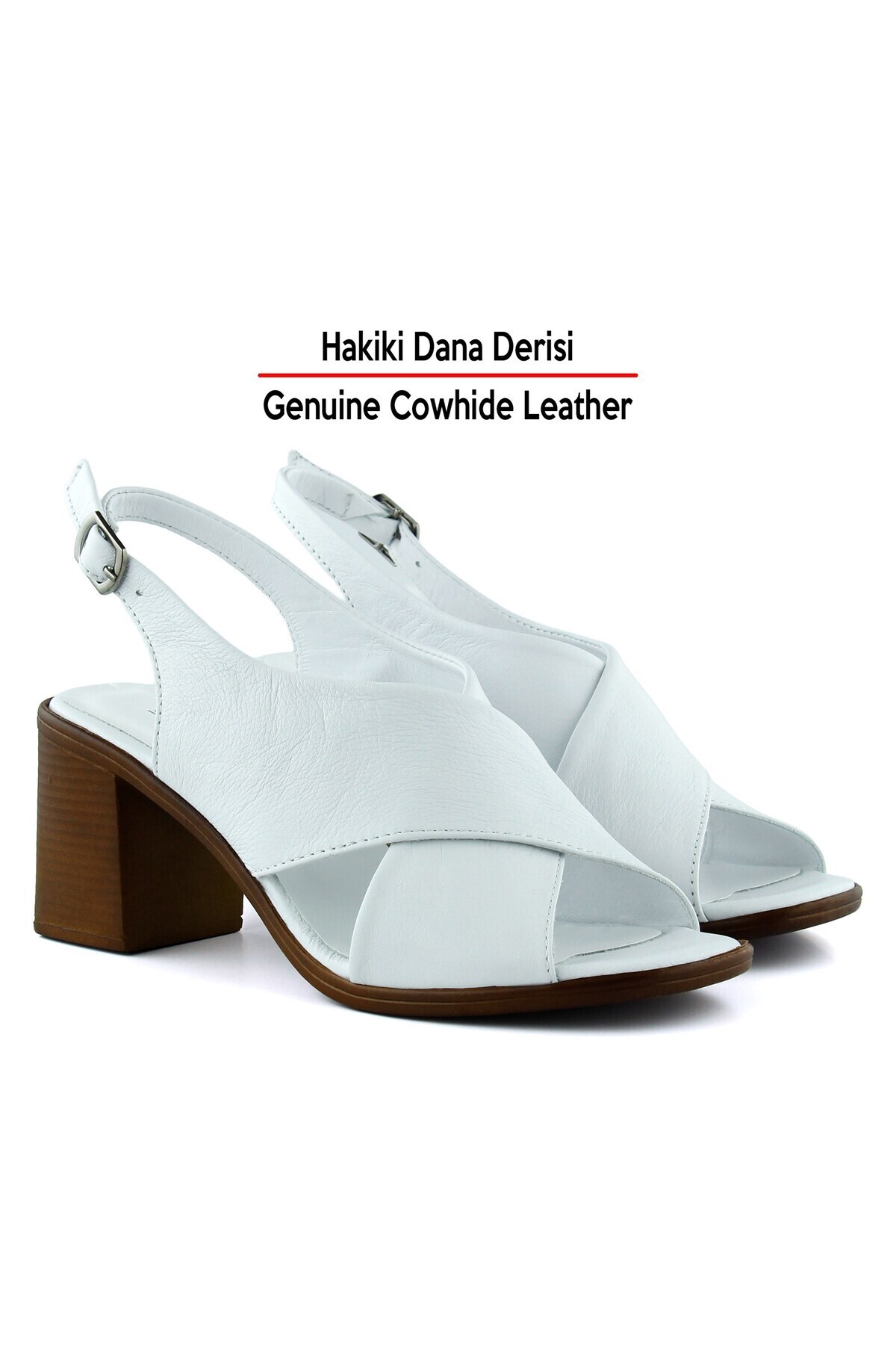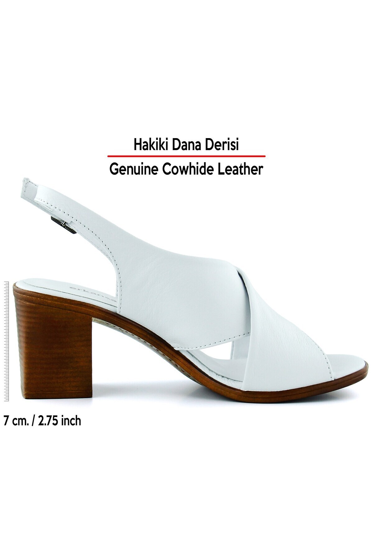 صندل راحتی راحتی زنانه Soleil سفید اصل از جنس پوست گوساله، پاشنه ضخیم با بند ضربدری