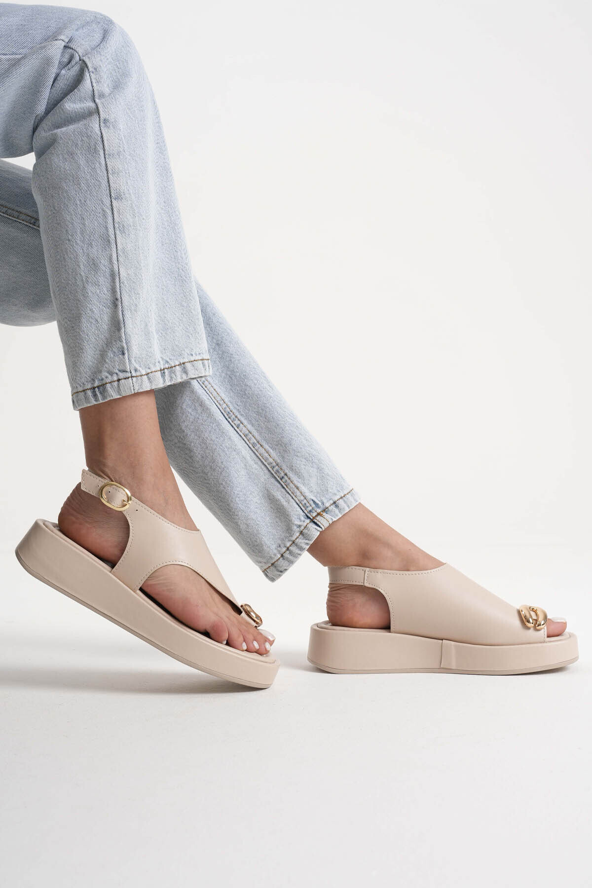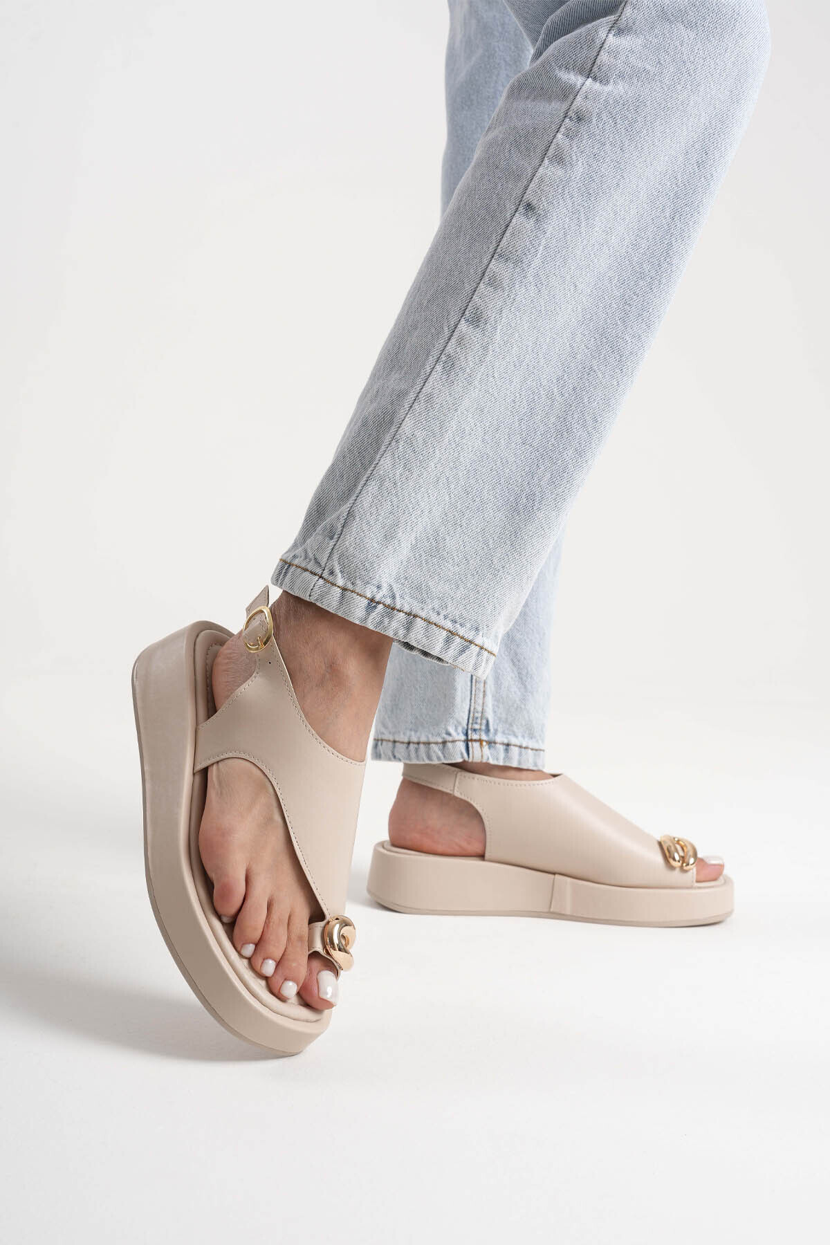 صندل زنانه بژ Silver Lady | AmcaParmakSandalet اورجینال