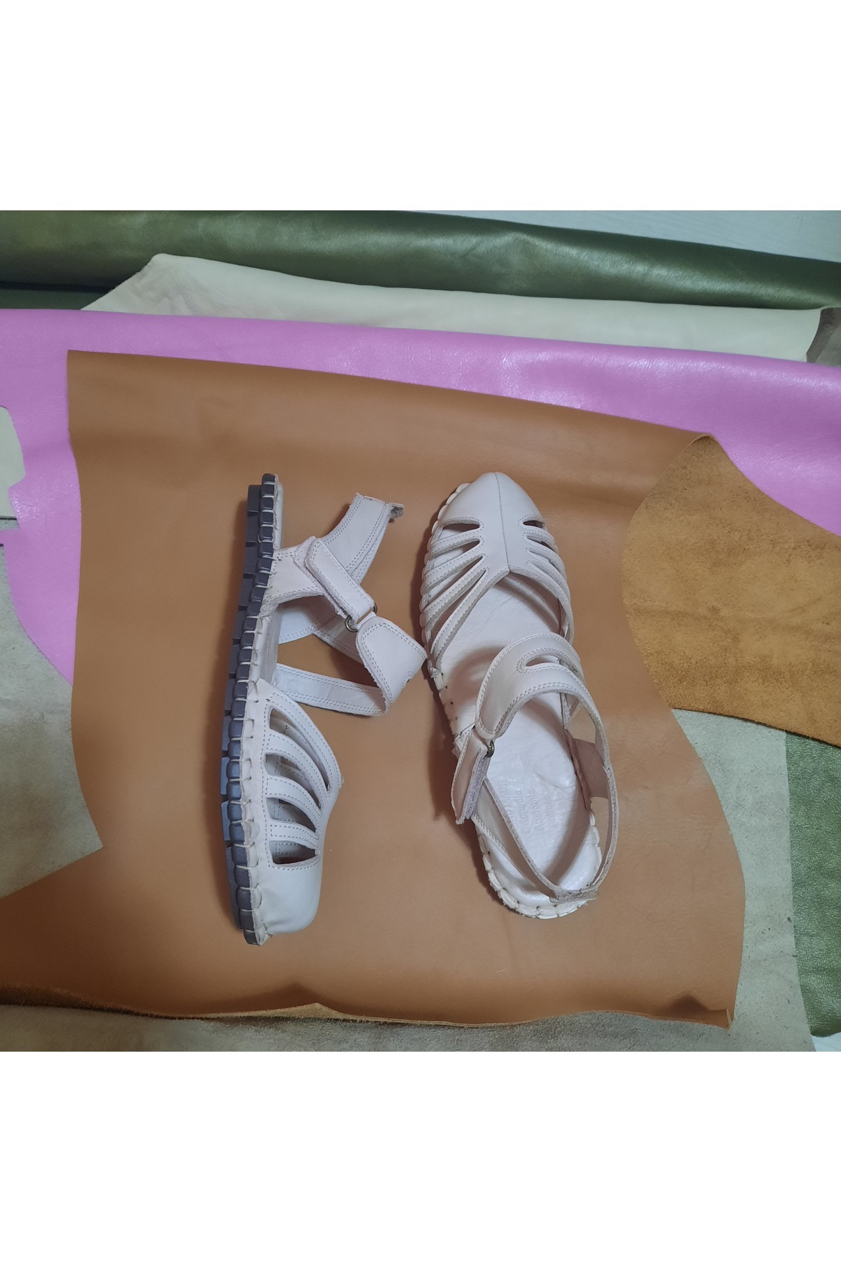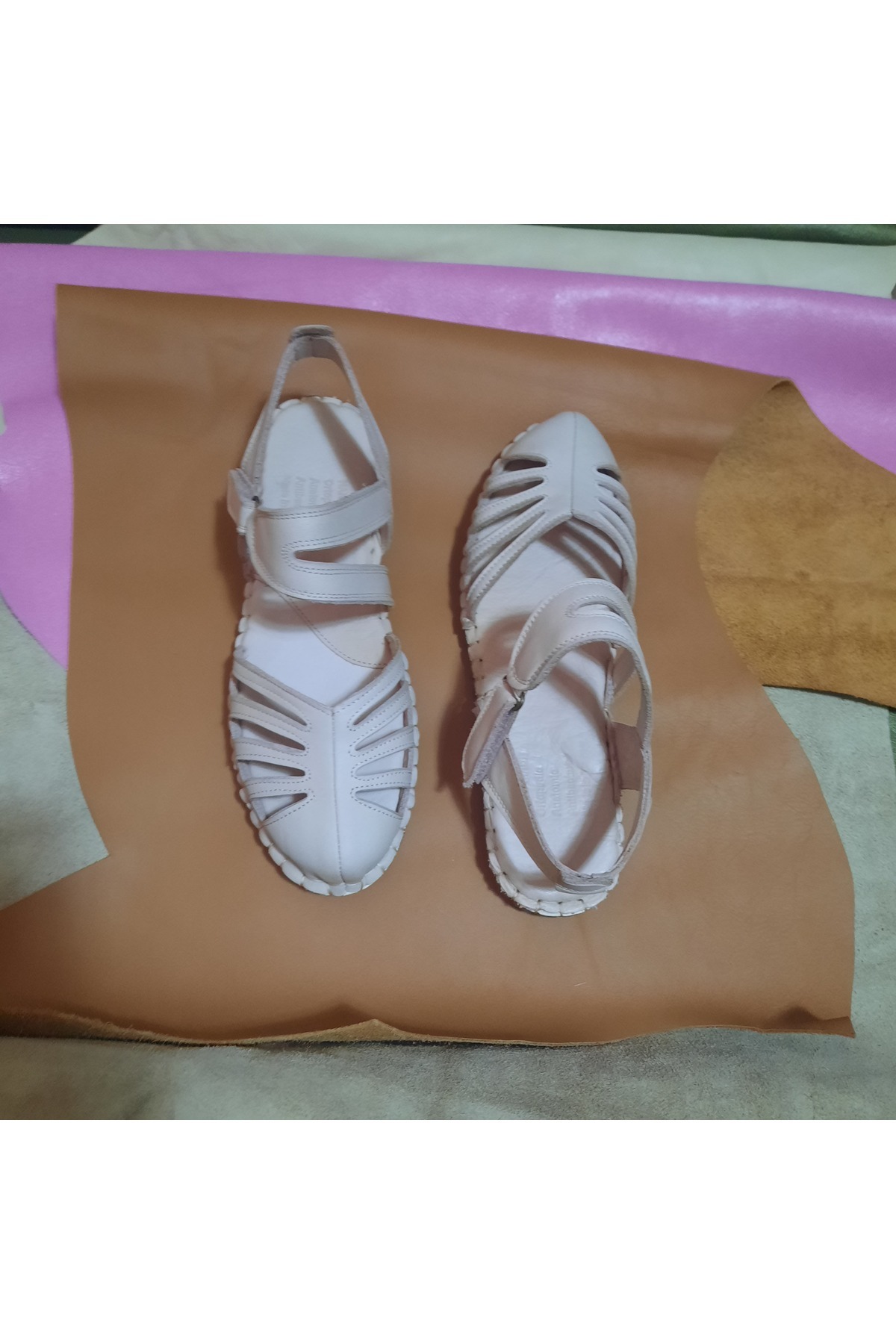 صندلهای کرم ولکرو سبک و انعطافپذیر با چرم ۱۰۰٪ اصل در داخل و خارج