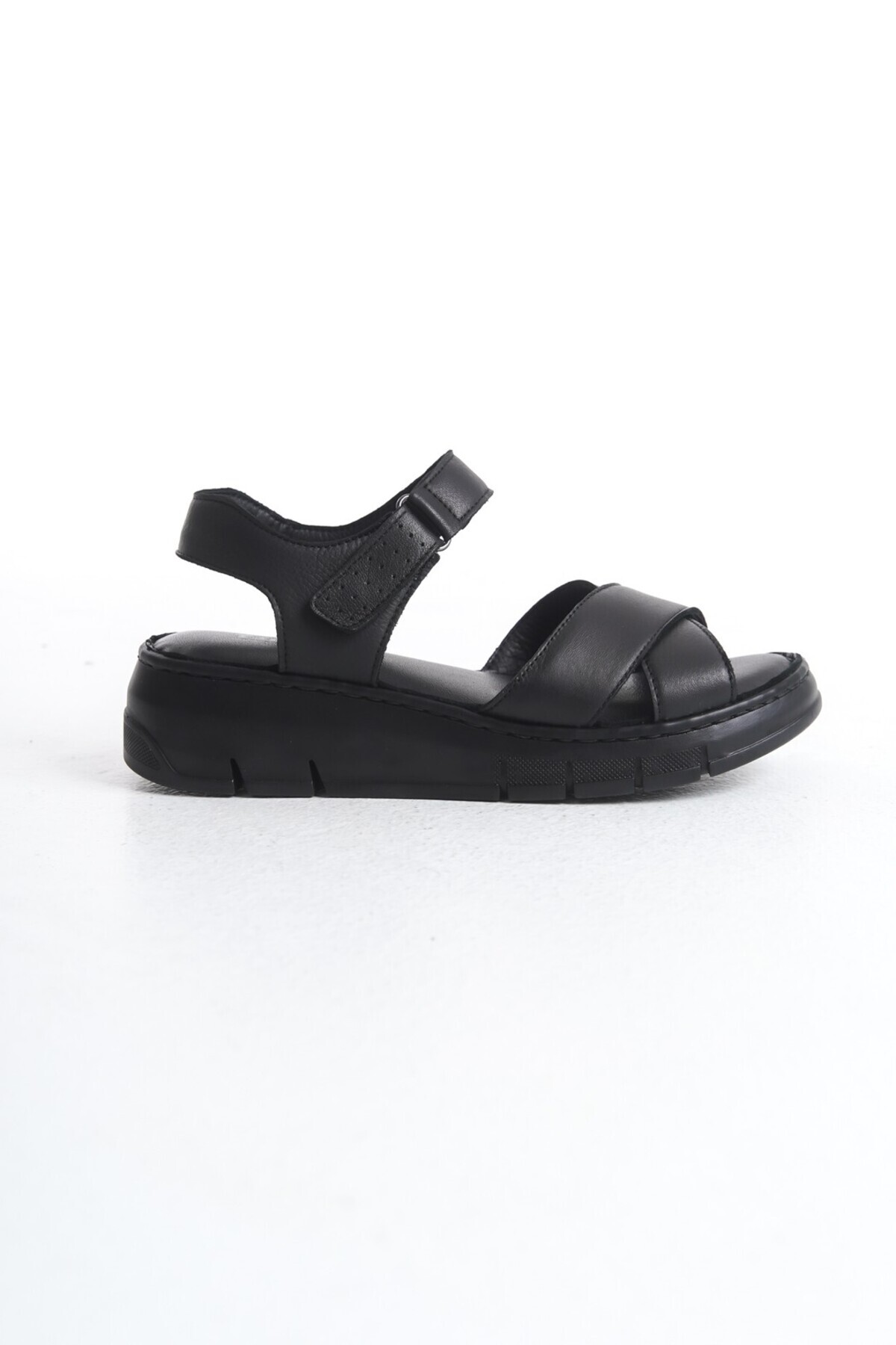 صندل زنانه راحت روزانه با زیره ارتوپدی از جنس چرم اصل مشکی TMD202575