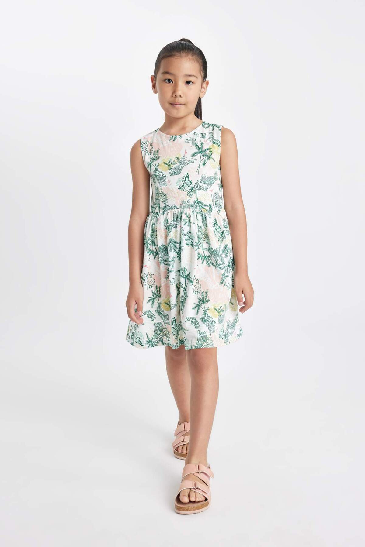 پیراهن تابستانی دخترانه طرحدار نخی بدون آستین D2341A824SM
