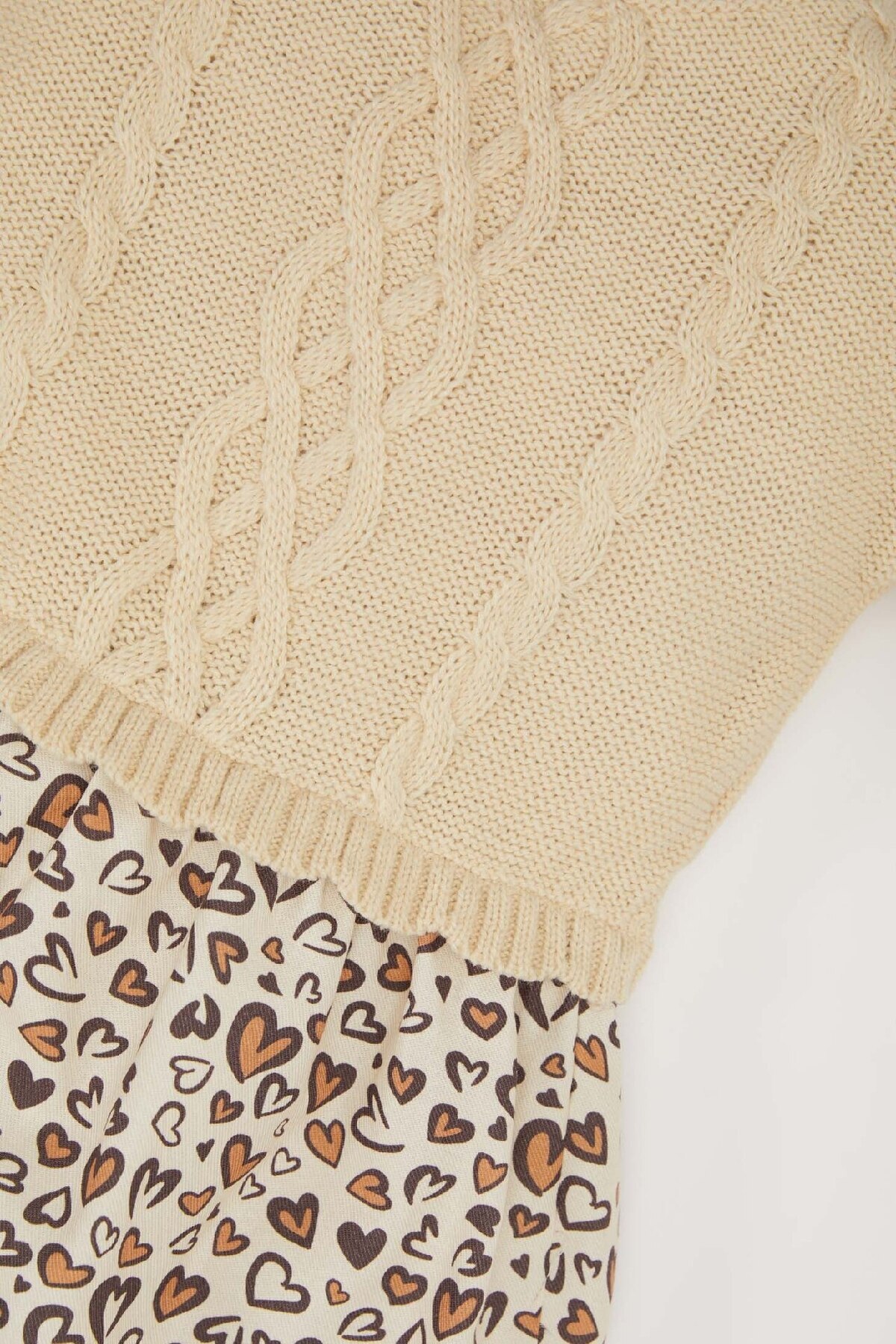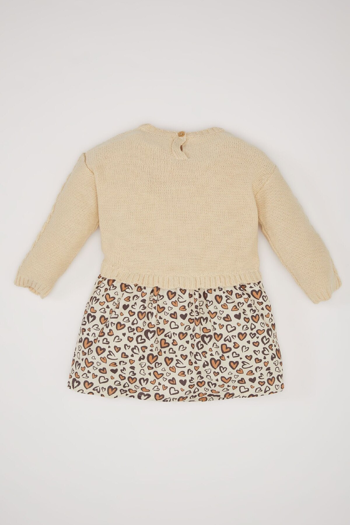 لباس بافتنی طرح دار دخترانه با دامن آستین بلند E7254A524AU
