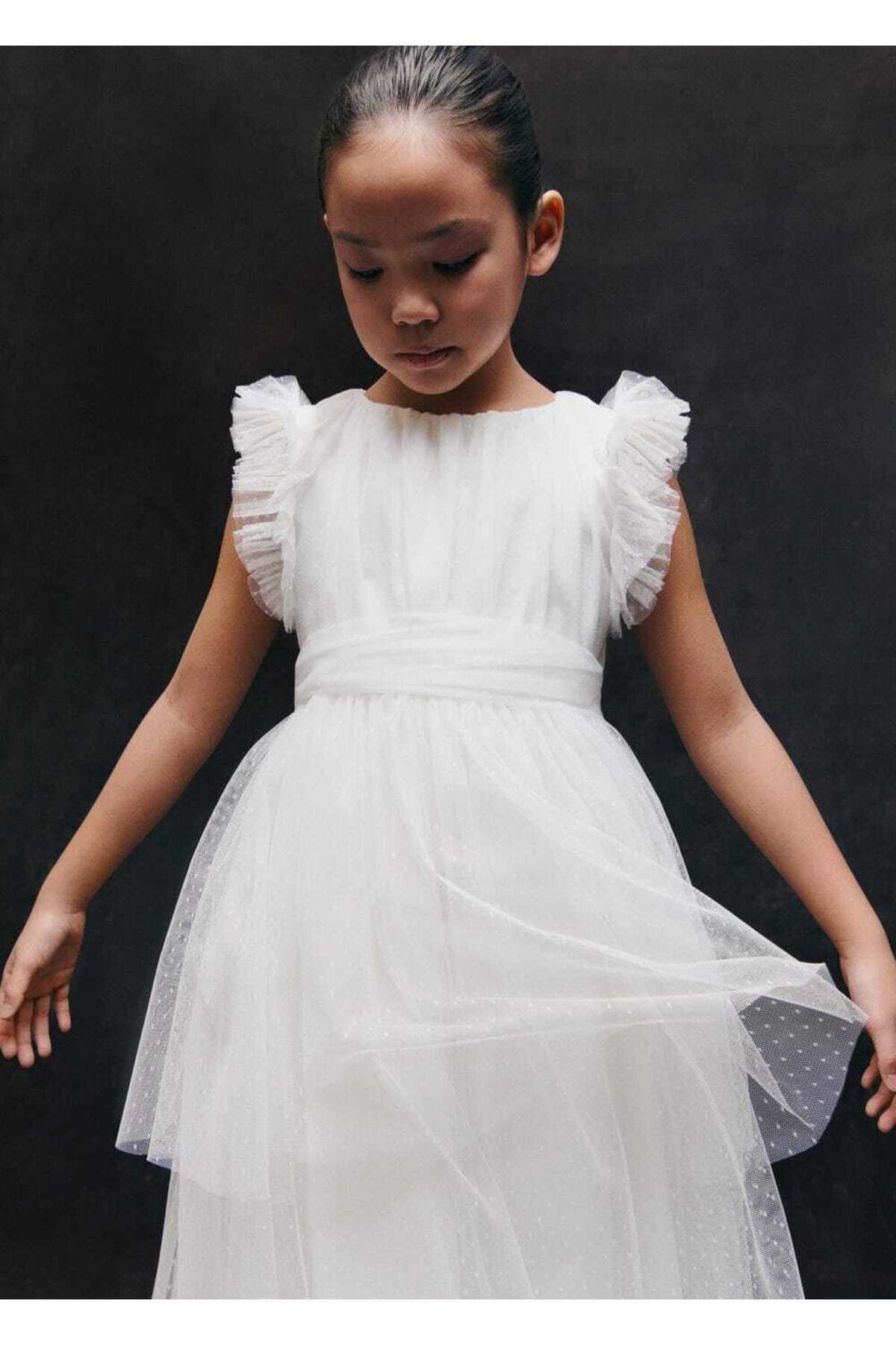 لباس مجلسی دخترانه سفید منگوMANGO Kids | 87043636 اورجینال