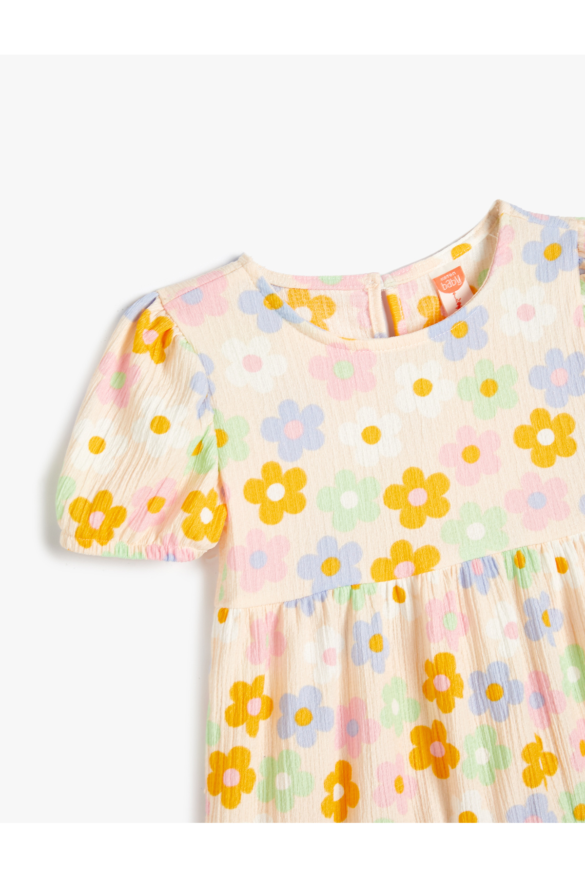 لباس گلدار آستین کوتاه یقه گرد بافت دار چند لایه
