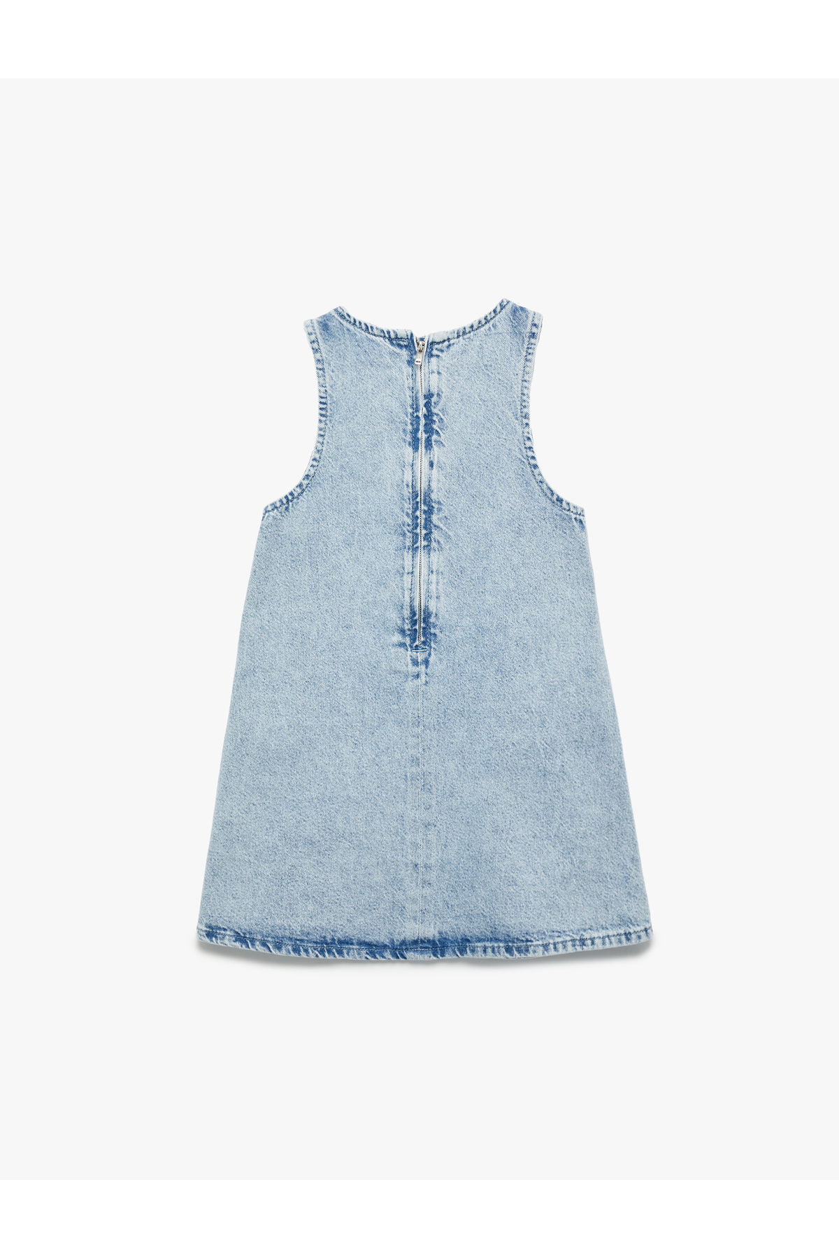 لباس جین گلدار بدون آستین یقه گرد نخی