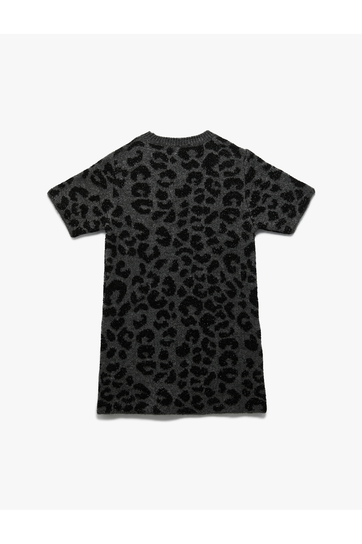 لباس بافتنی آستین کوتاه یقه گرد طرح پلنگی