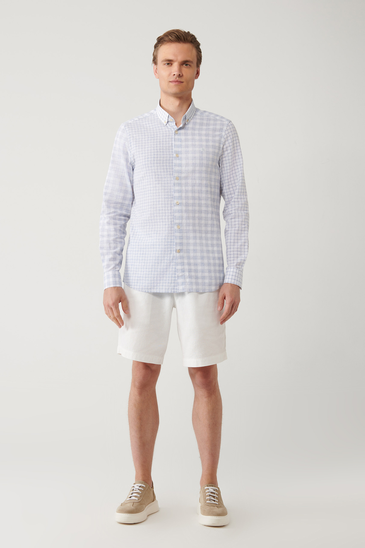 پیراهن مردانه طرح آبی چهارخانه، طرح کتان، سایز معمولی، A41Y2052