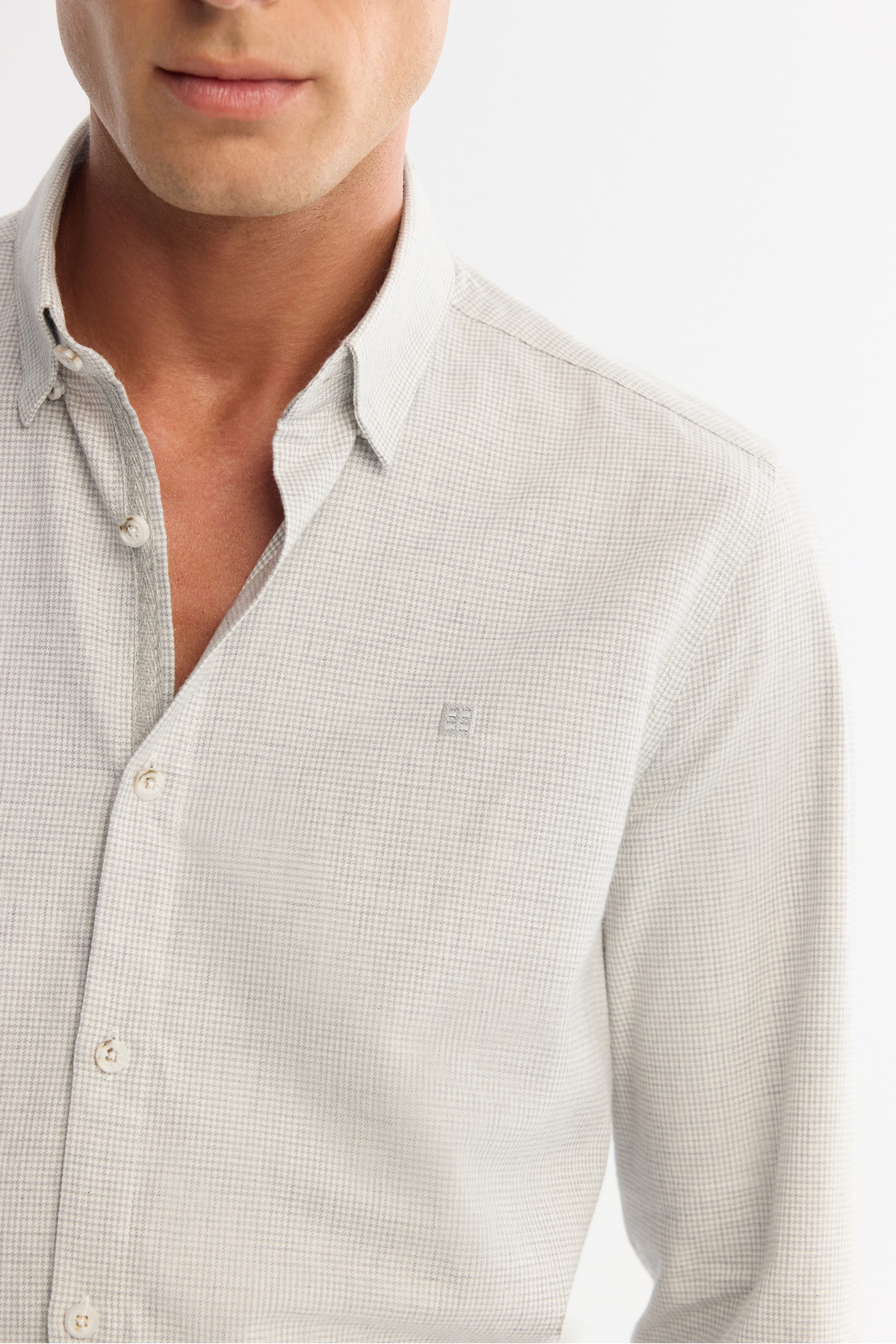 پیراهن مردانه یقه دکمهدار خاکستری، ۱۰۰٪ پنبه، جنس فلانل، مناسب برای استفاده روزمره، A42Y2002