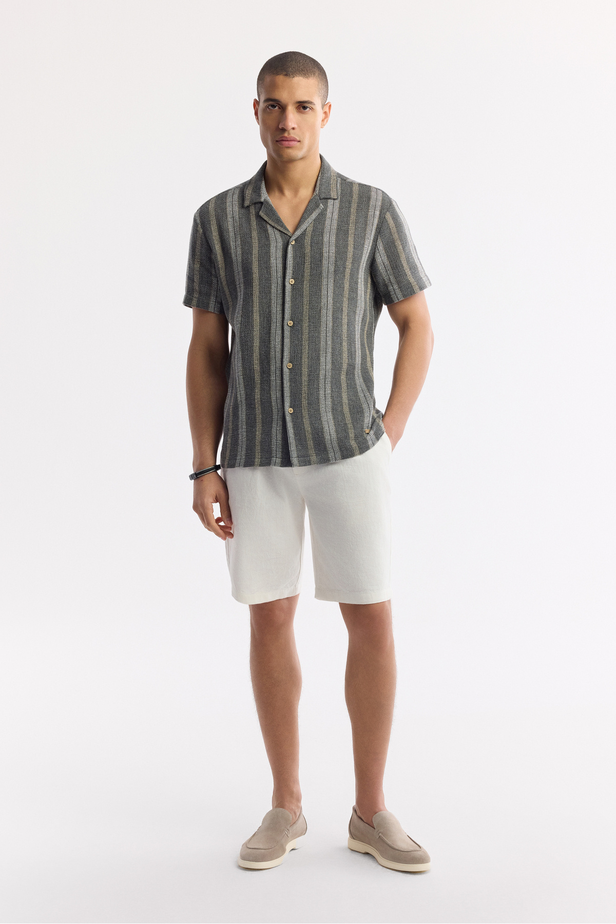 پیراهن مردانه آستین کوتاه یقه آنتراسیت Apaj نخی راحتی A51Y2138