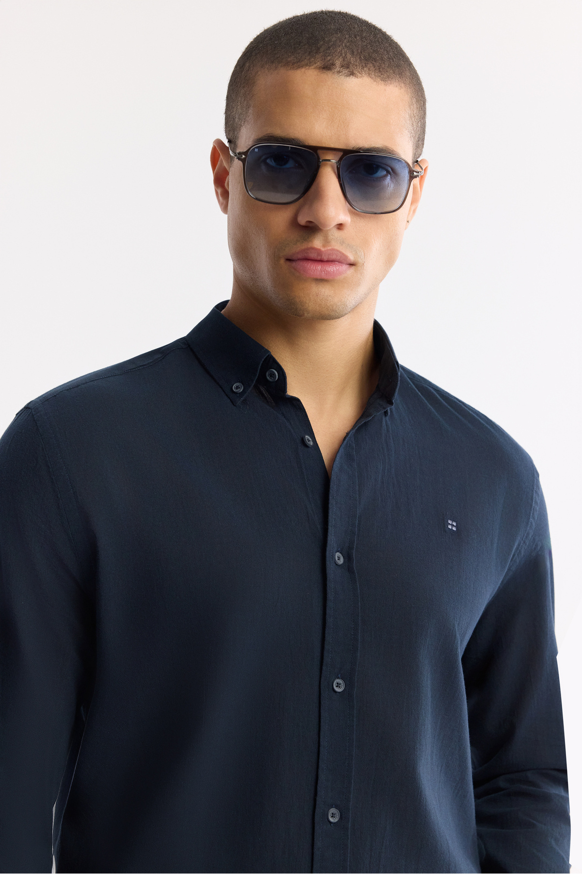 پیراهن مردانه یقه دکمهدار سرمهای، ۱۰۰٪ پنبه، سایز معمولی A51Y2206