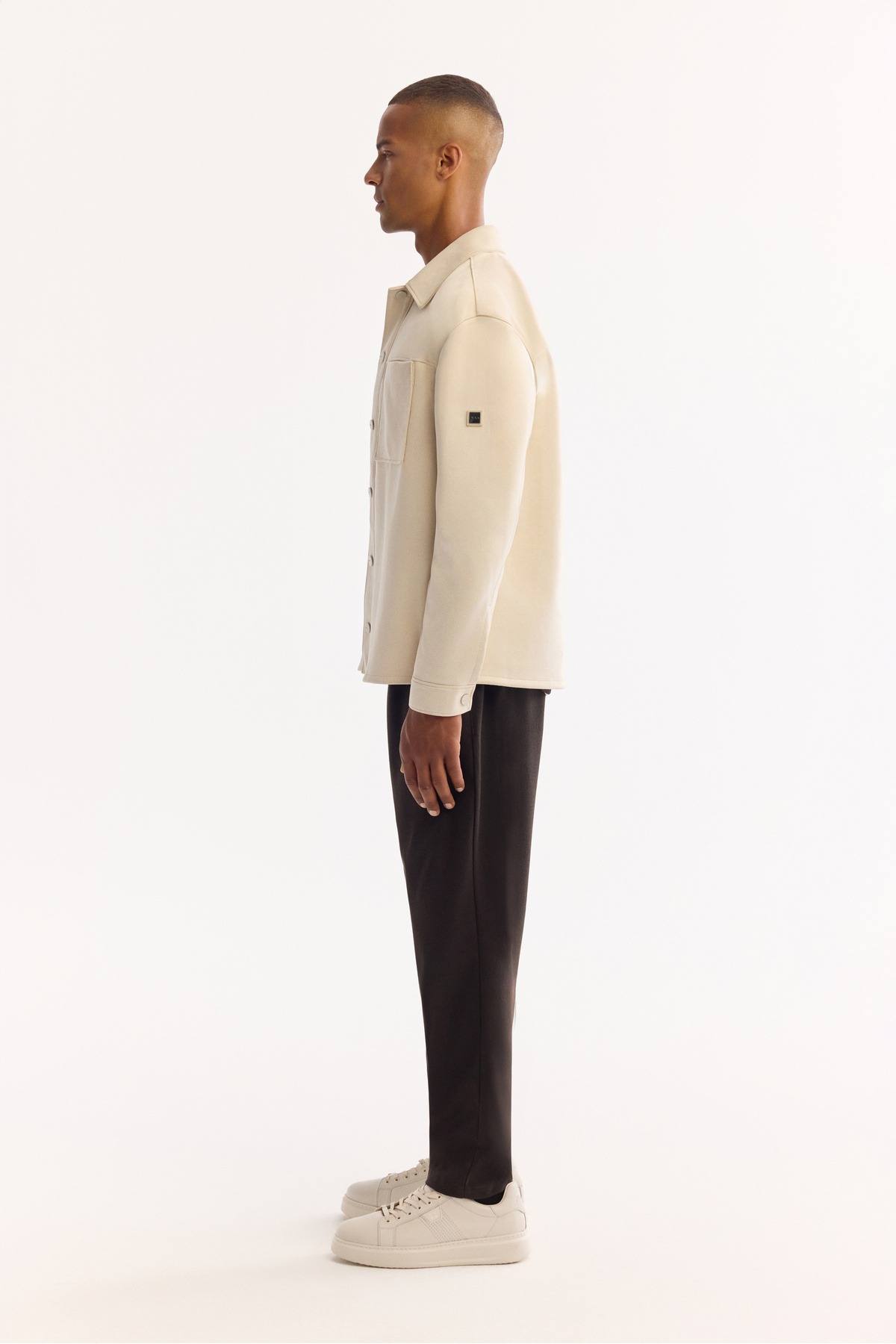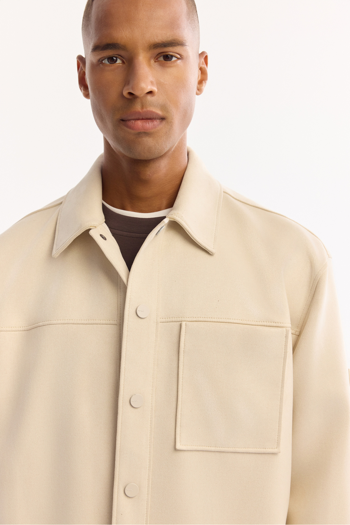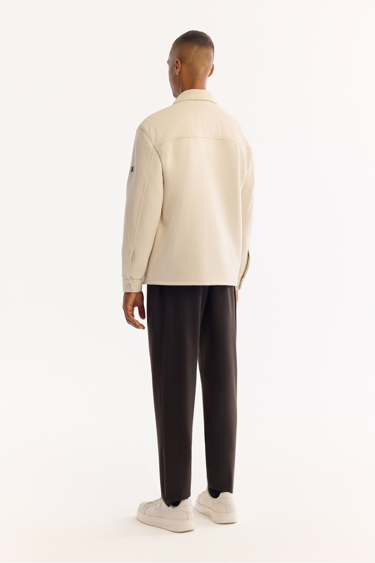 ژاکت مردانه چرم مصنوعی جیر بژ با دکمه فشاری از جلو و جیب A52Y6004