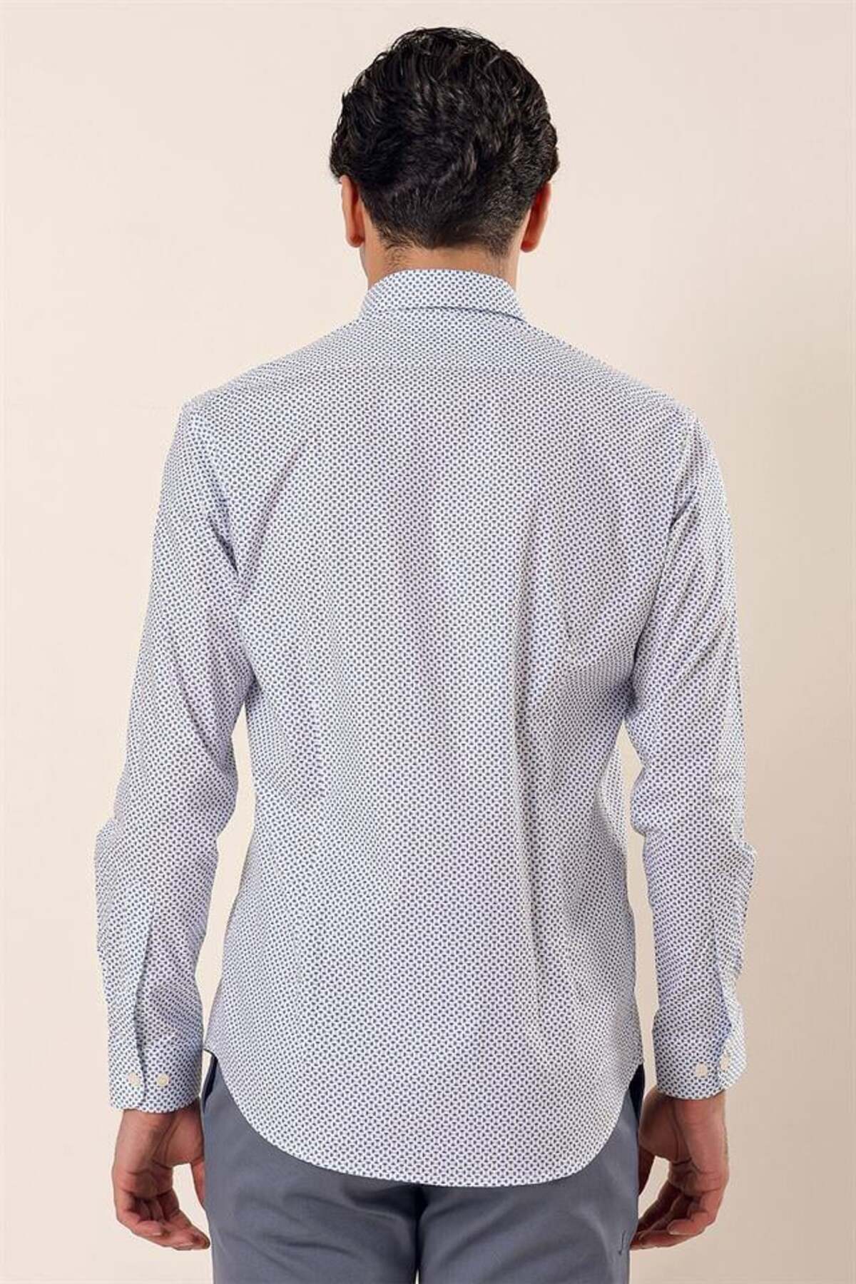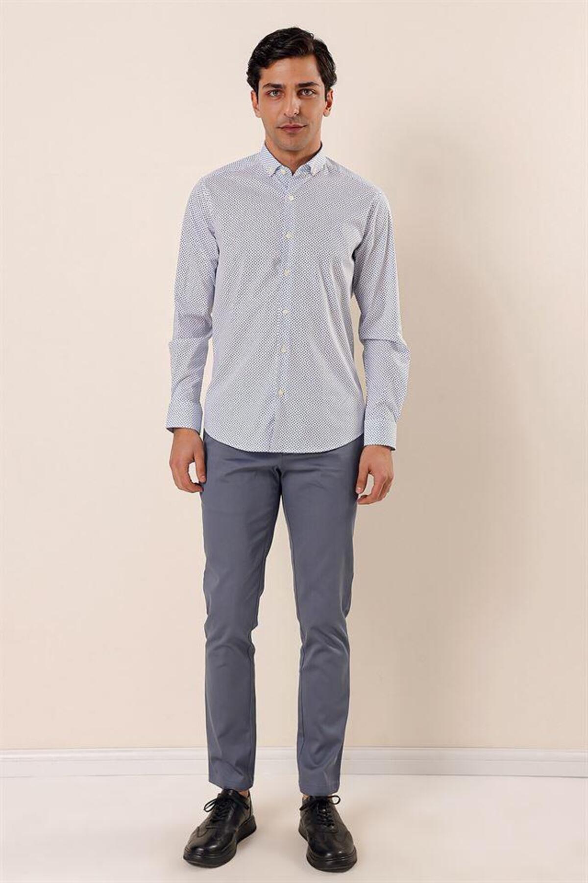 پیراهن آستین بلند طرحدار بدون جیب از جنس پنبه لیکرا، سرمهای تیره، مدل اسلیم فیت، مناسب برای آقایان، کد ۱۰۰۴۲۳۰۱۱۵