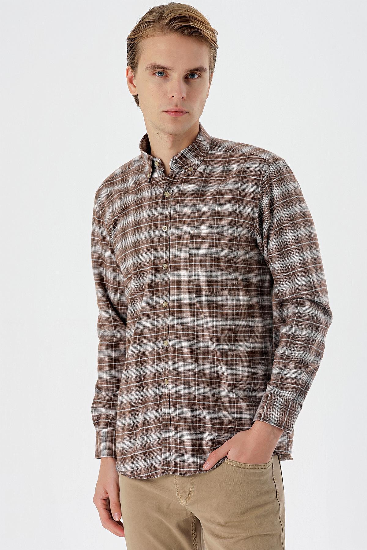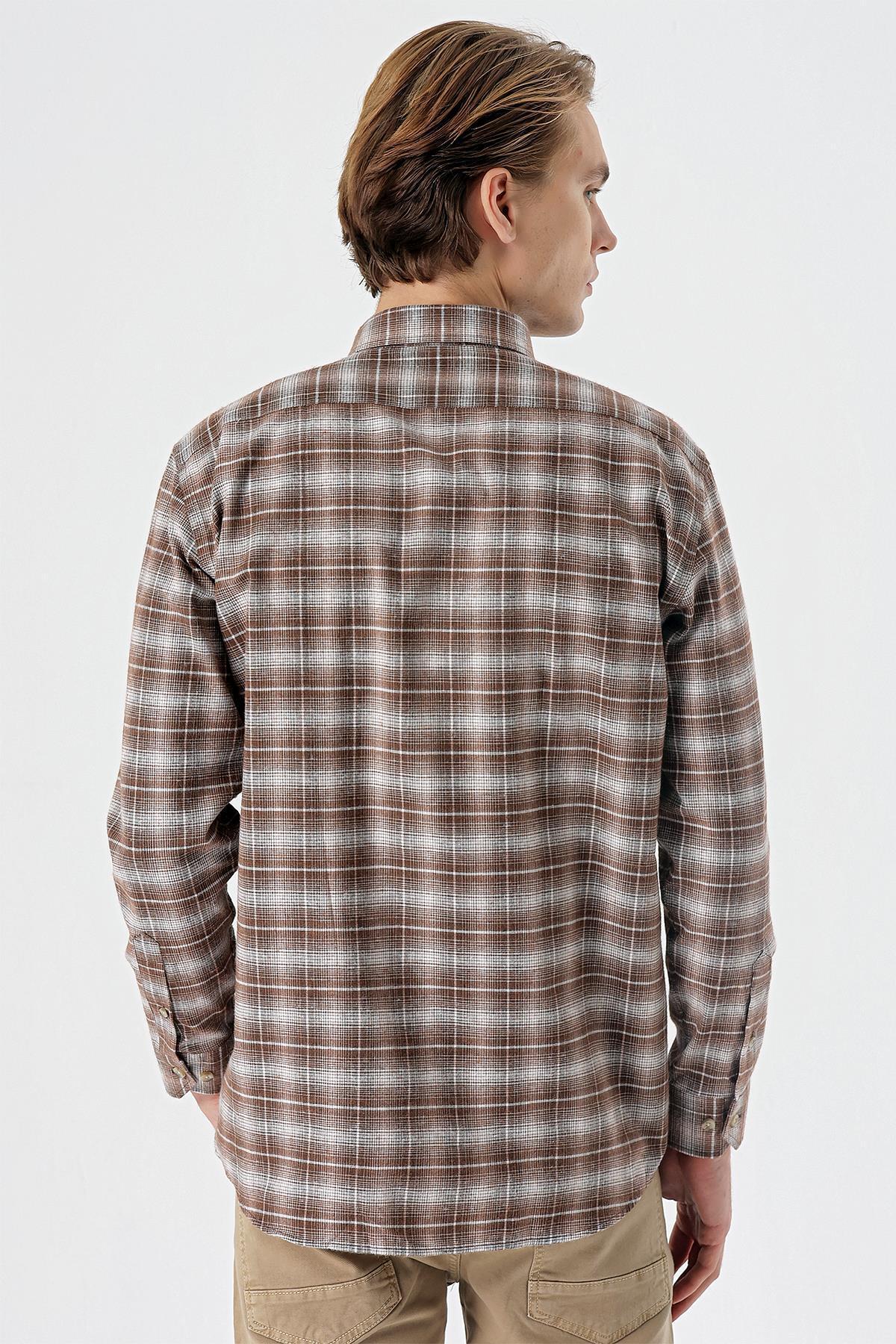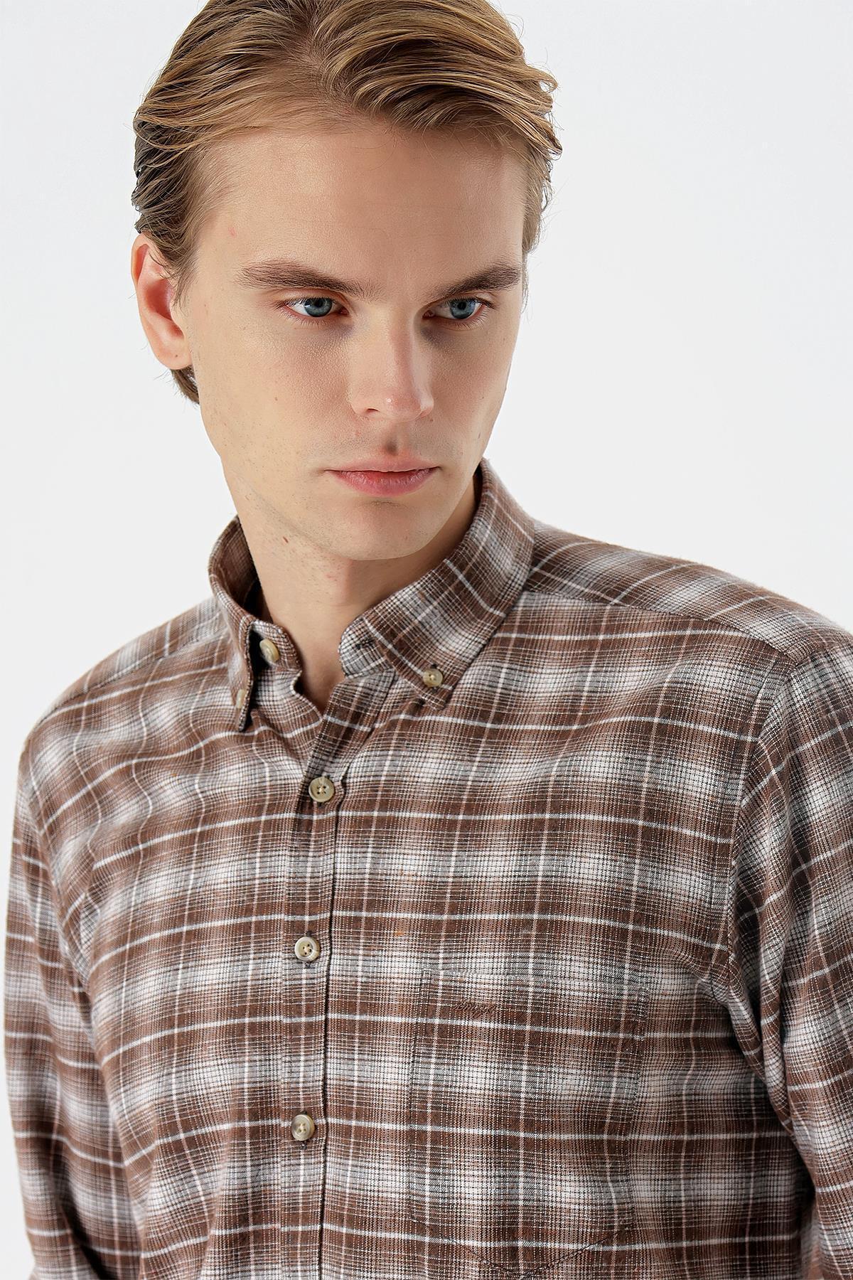 پیراهن مردانه قهوه ای دفکتو | T2066AZ22SP اورجینال