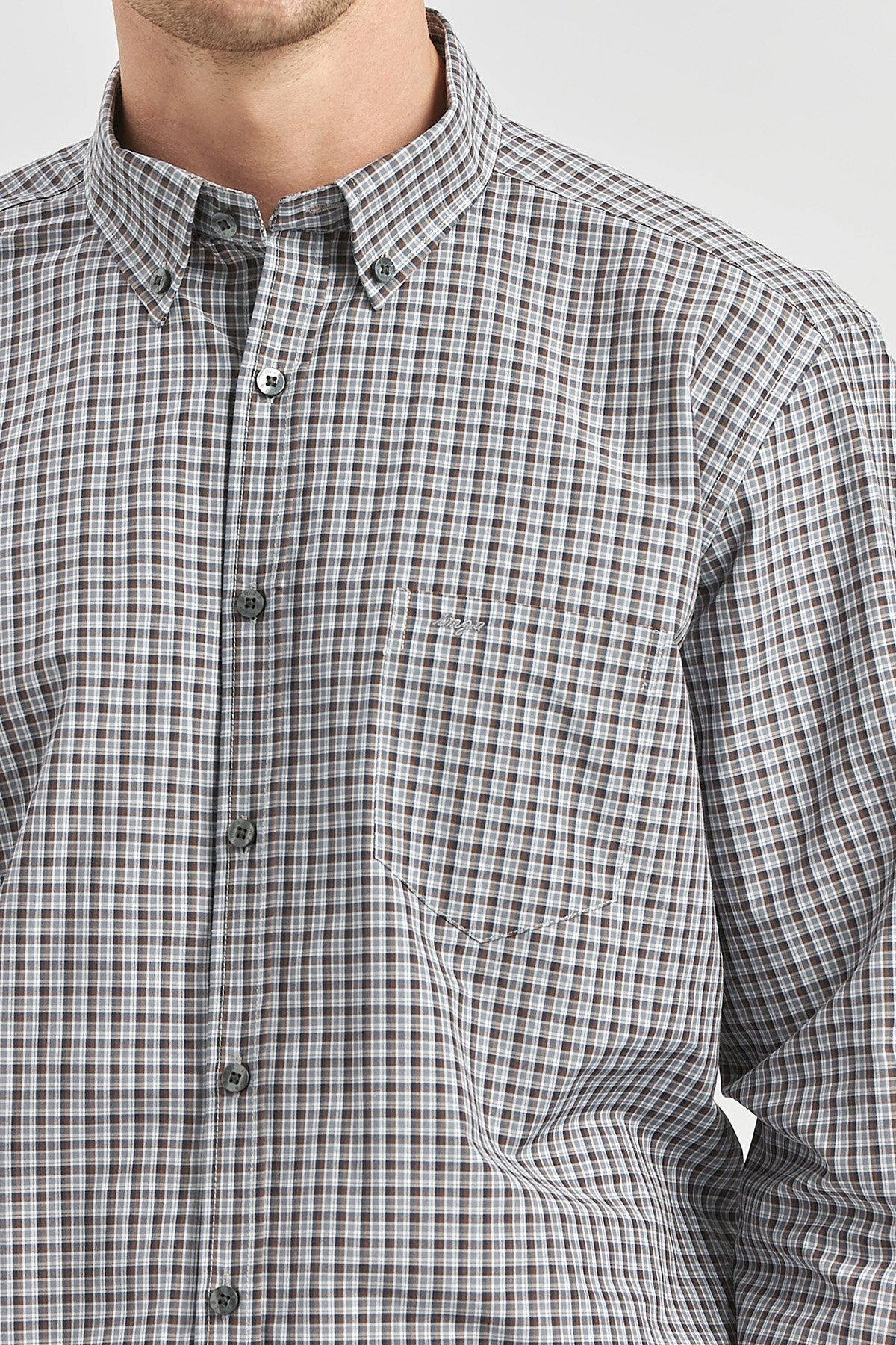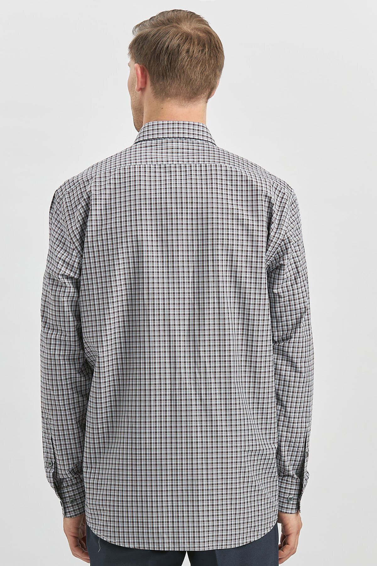 پیراهن راحتی کلاسیک هوشمند طرح چهارخانه آستین بلند قهوهای تیره کد ۱۰۰۴۲۴۰۲۵۲