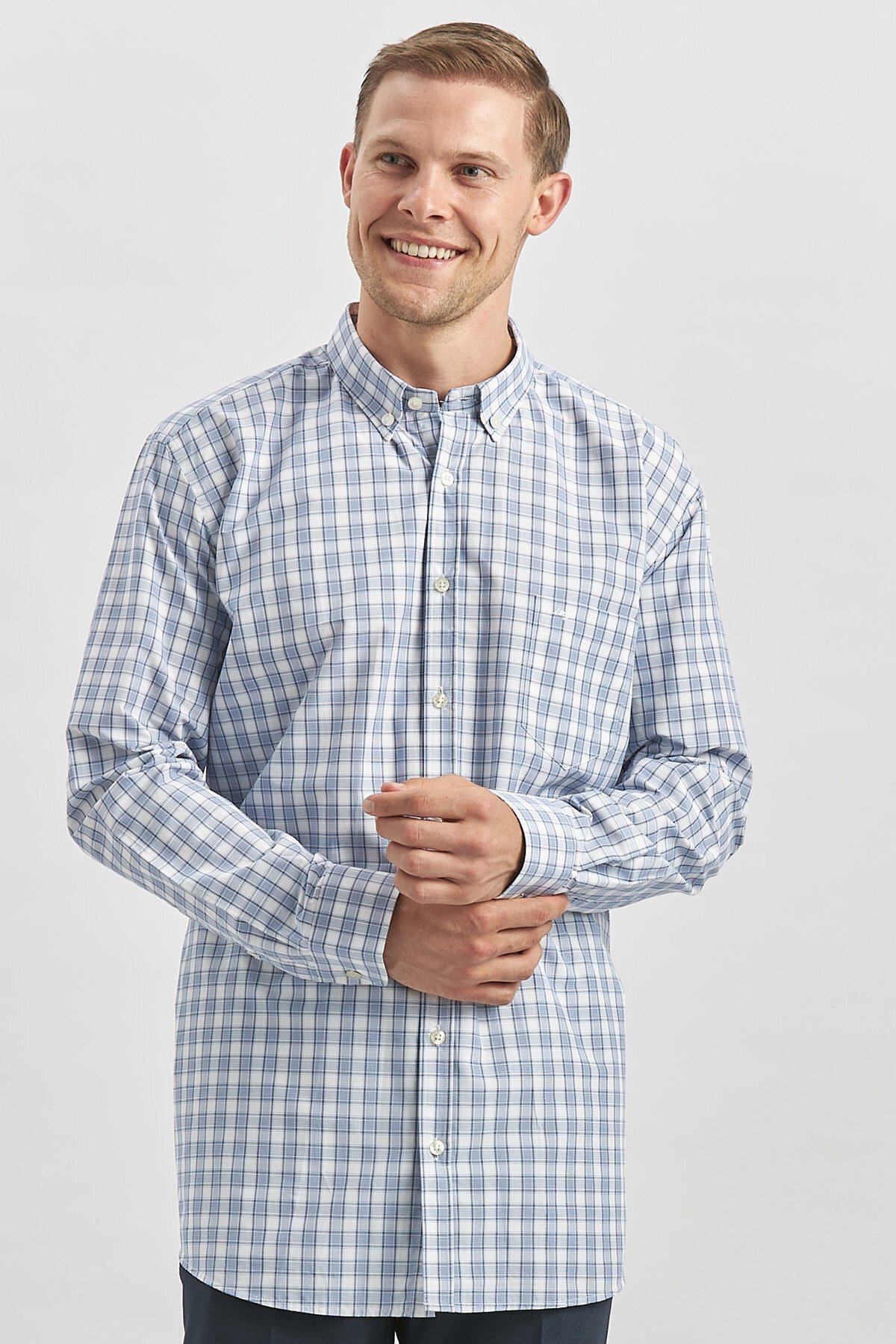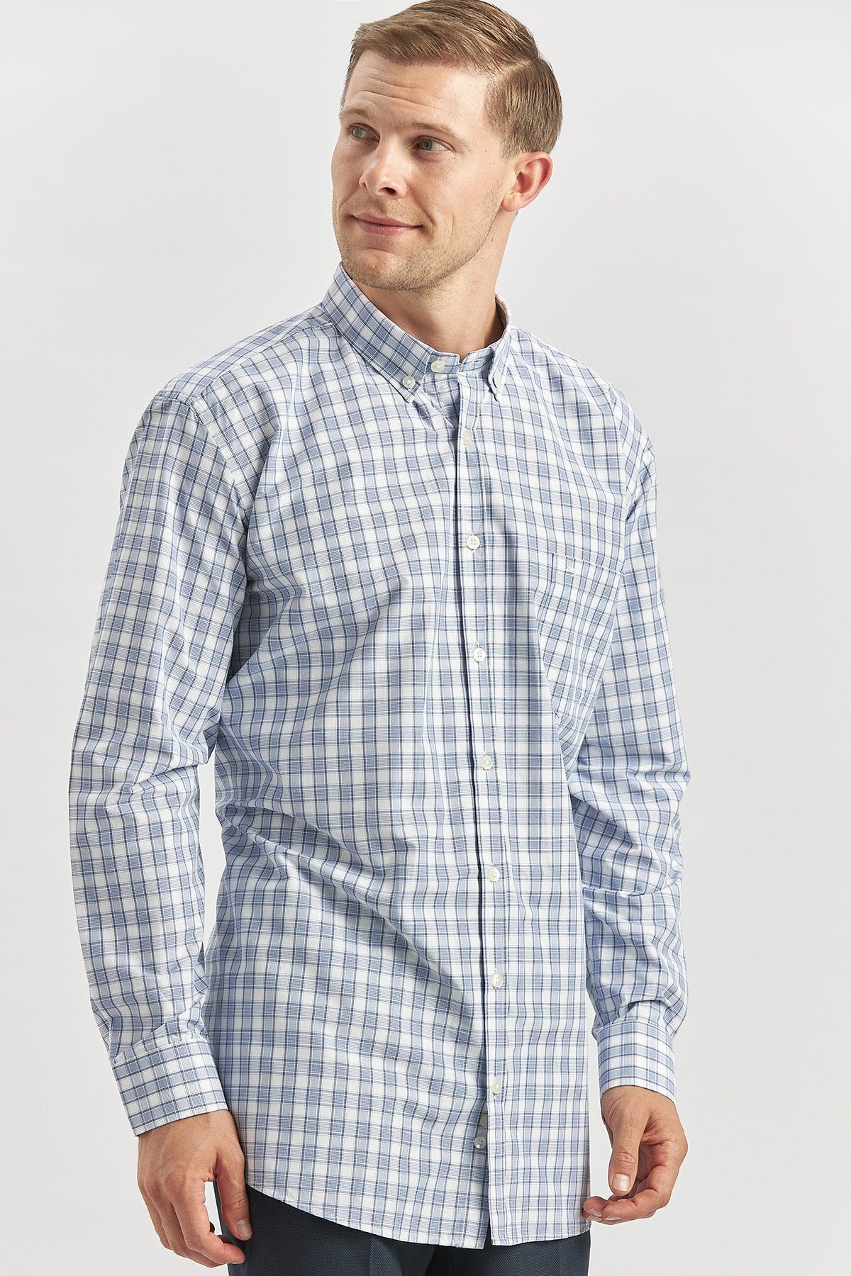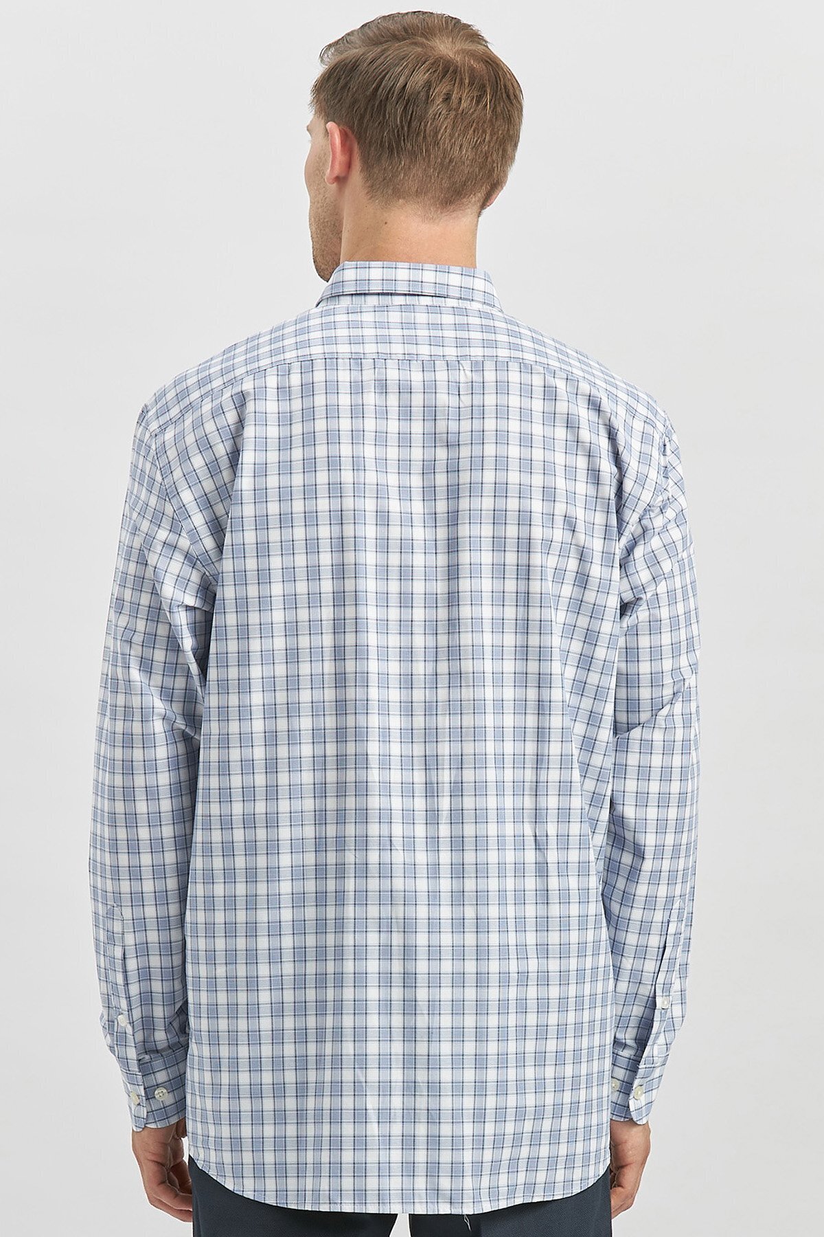 پیراهن آستین بلند سرمهای تیره طرح چهارخانه، راحتی کلاسیک هوشمند، کد ۱۰۰۴۲۴۰۲۵۳