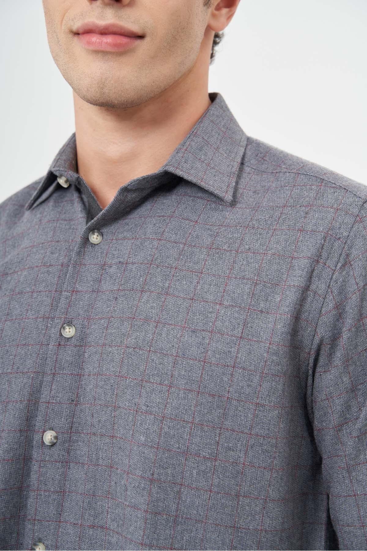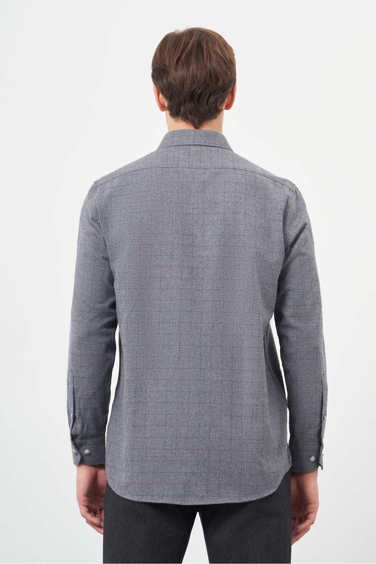 پیراهن راحتی کلاسیک نخی بدون جیب گاباردین طرح چهارخانه آستین بلند سرمهای تیره کد ۱۰۰۴۲۴۵۱۶۶