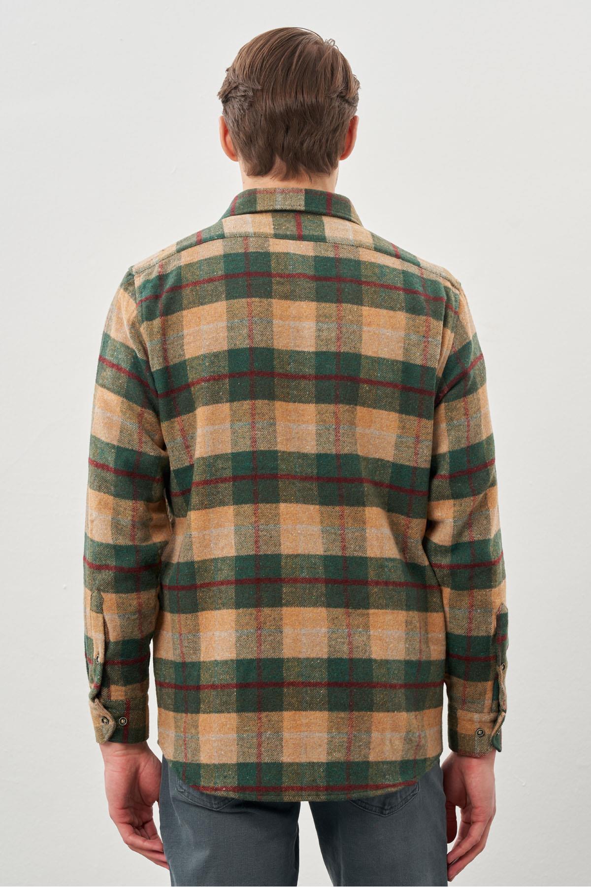 پیراهن مردانه طرح چهارخانه پشمی شتری، یقه نرم، آستین بلند، بدون جیب، مناسب برای استفاده روزمره و راحتی، کد 1004245227