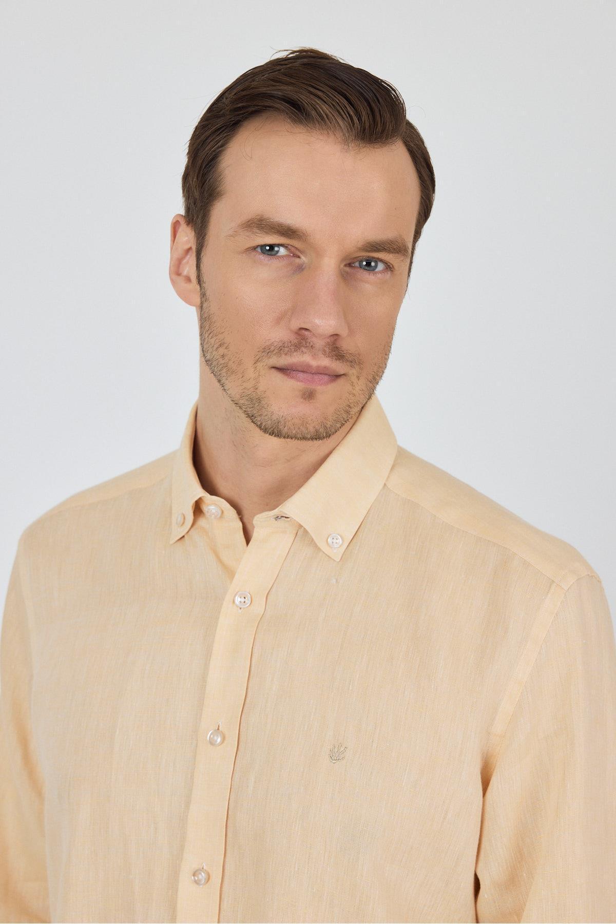 پیراهن مردانه آستین بلند کتانی ساده یقه دکمهدار، مناسب برای استفاده روزمره و راحت، بدون جیب، کد ۱۰۰۴۲۵۰۱۱۴