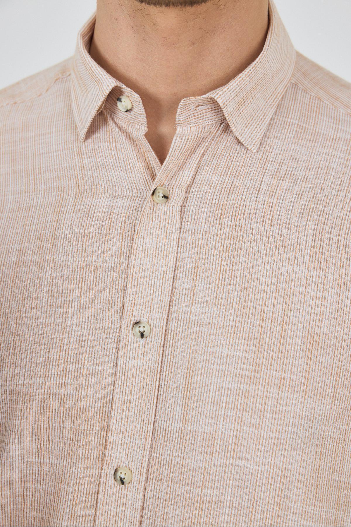 پیراهن نخی آستین بلند بدون جیب طرح ماهی سالمون روشن، راحتی و مناسب برای استفاده روزمره، کد ۱۰۰۴۲۵۰۱۲۷