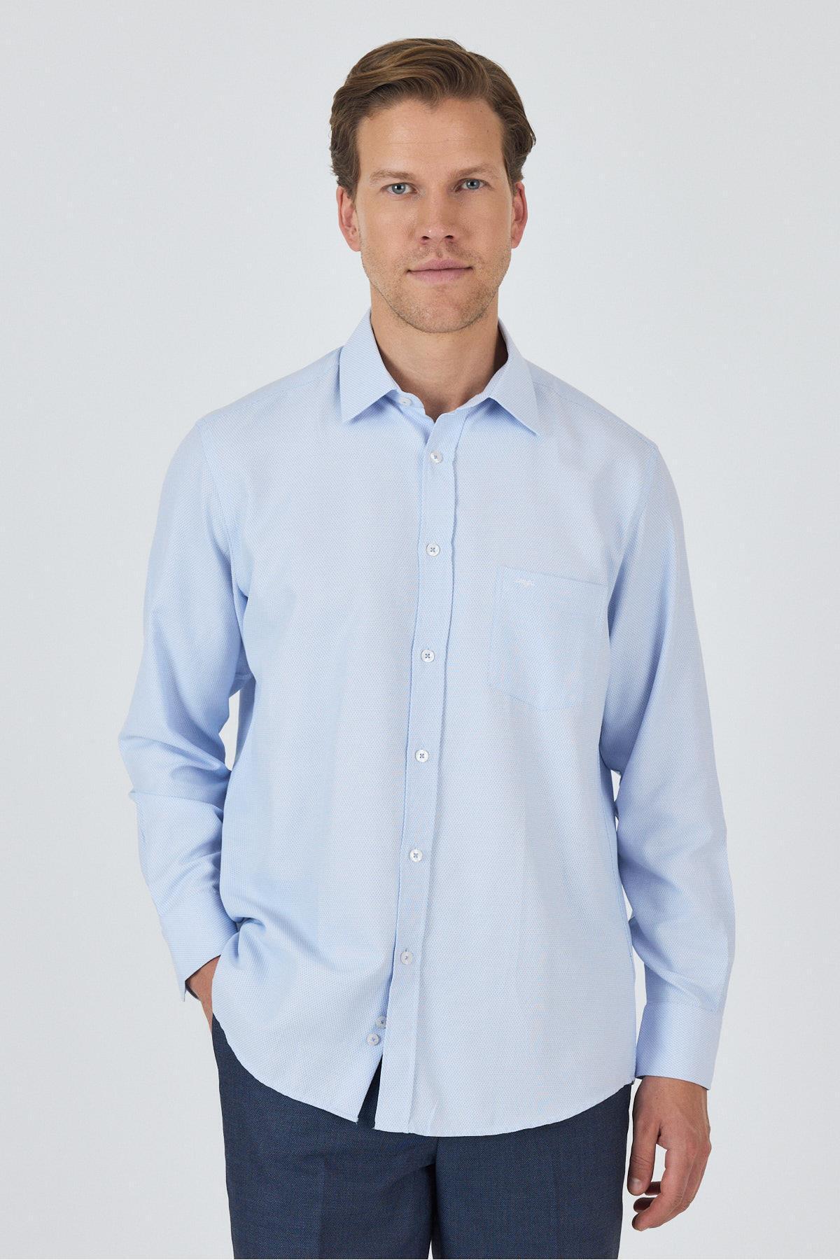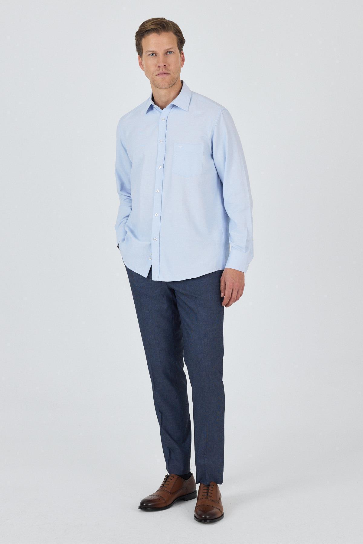 پیراهن راحتی نخی کلاسیک طرحدار یقه سفت سرمهای تیره کد ۱۰۰۴۲۵۰۲۲۰
