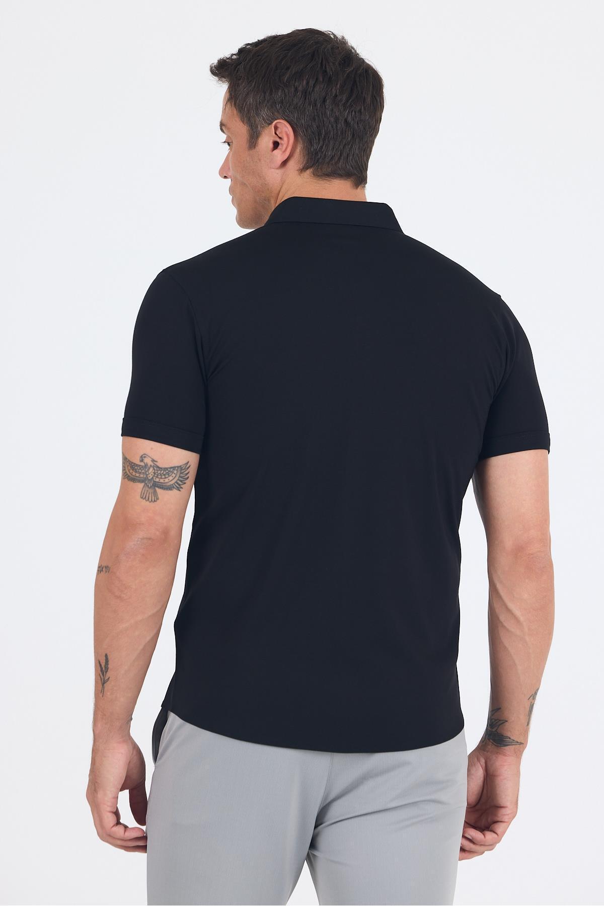 پیراهن آستین کوتاه یقه دکمهدار مشکی ایتالیایی بدون جیب کد ۱۰۰۴۲۵۰۲۵۵