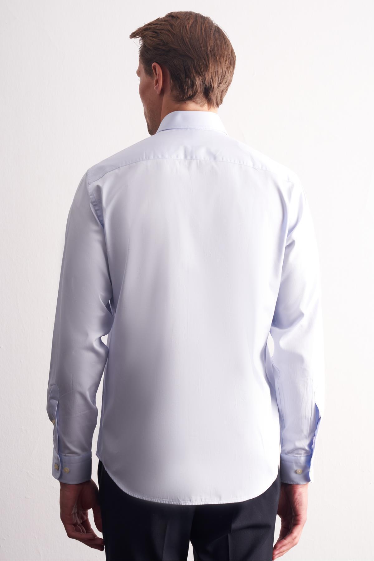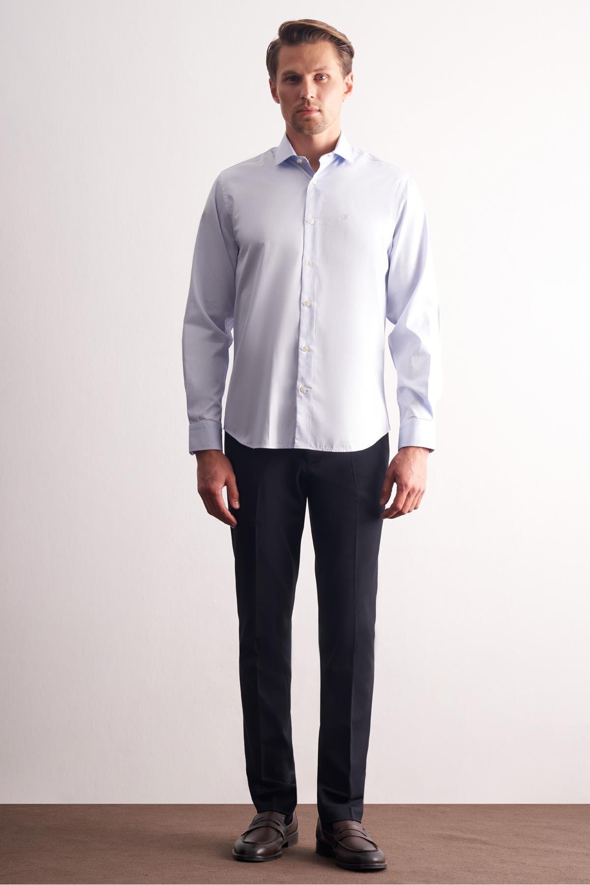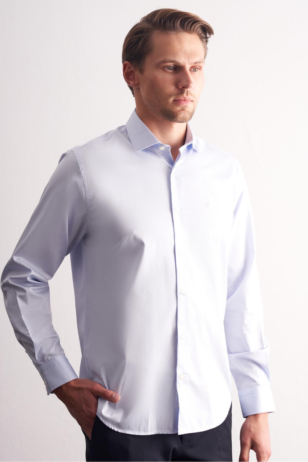 پیراهن آستین بلند ساتن یقه ایتالیایی آبی روشن، اسلیم فیت، ۱۰۰٪ پنبه، کد ۱۰۰۴۲۵۵۱۹۵